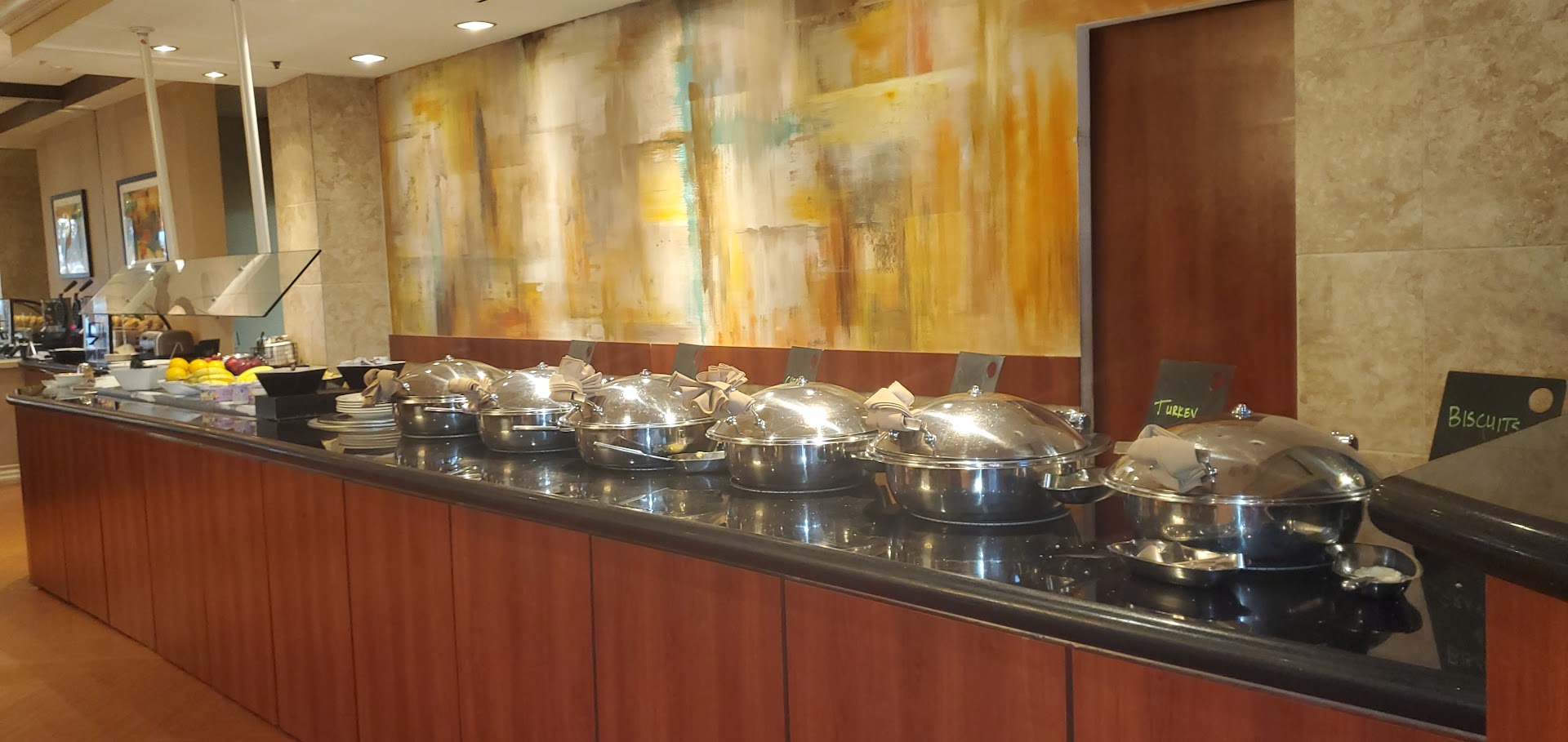 Restaurant convenient for conference attendees as parking is tough to get with the number of participants and in/out was not an easy task. Food is ok, not great, pricey for the quality of food, staff were friendly and worked hard for the customers, thus, the only reason I returned each day. If it had not been for the serving staff, a quick snack from the vending machine would have worked. Conference, restaurant, bellman, front desk; let's just say, all around, the staff was amazing, very helpful, pleasant, and extremely professional. Hotel gets a 5, the restaurant food gets a 2....