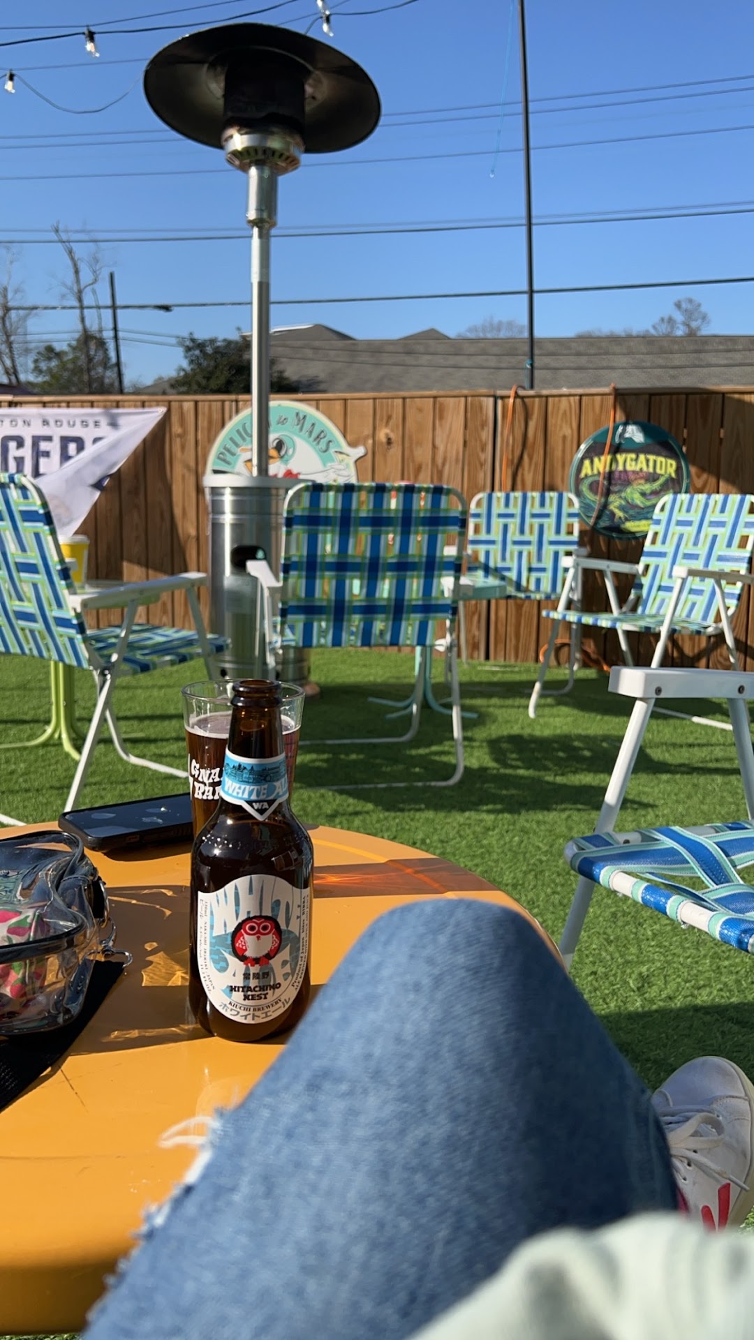 Read moreThis is a new-ish place on Government Street Mid City Entertainment District in an old gas station, I believe. They have a small inside with a long full bar. The bartender was not very attentive. I had to call him over to get me a cocktail even though no one was at the bar, they have no servers, table service or food. They do have very cool locals that frequent from the neighborhood so it is a very cool vibe. The atmosphere is very relaxed with a garage door open into the outside lawn area. It is set up like a backyard with old school patio tables and chairs. Dogs are also allowed outside. There are live music many nights even during the week. They also have trivia and karaoke as well as other special activities & themes. It is a really cool place where everyday isn't the same thing. Try it out on a gorgeous day, which you can find 8 months out of the year, fall through end of Spring. Summers are way too hot for outside. If they have A/C inside, it didn't seem like it when I was there one day...