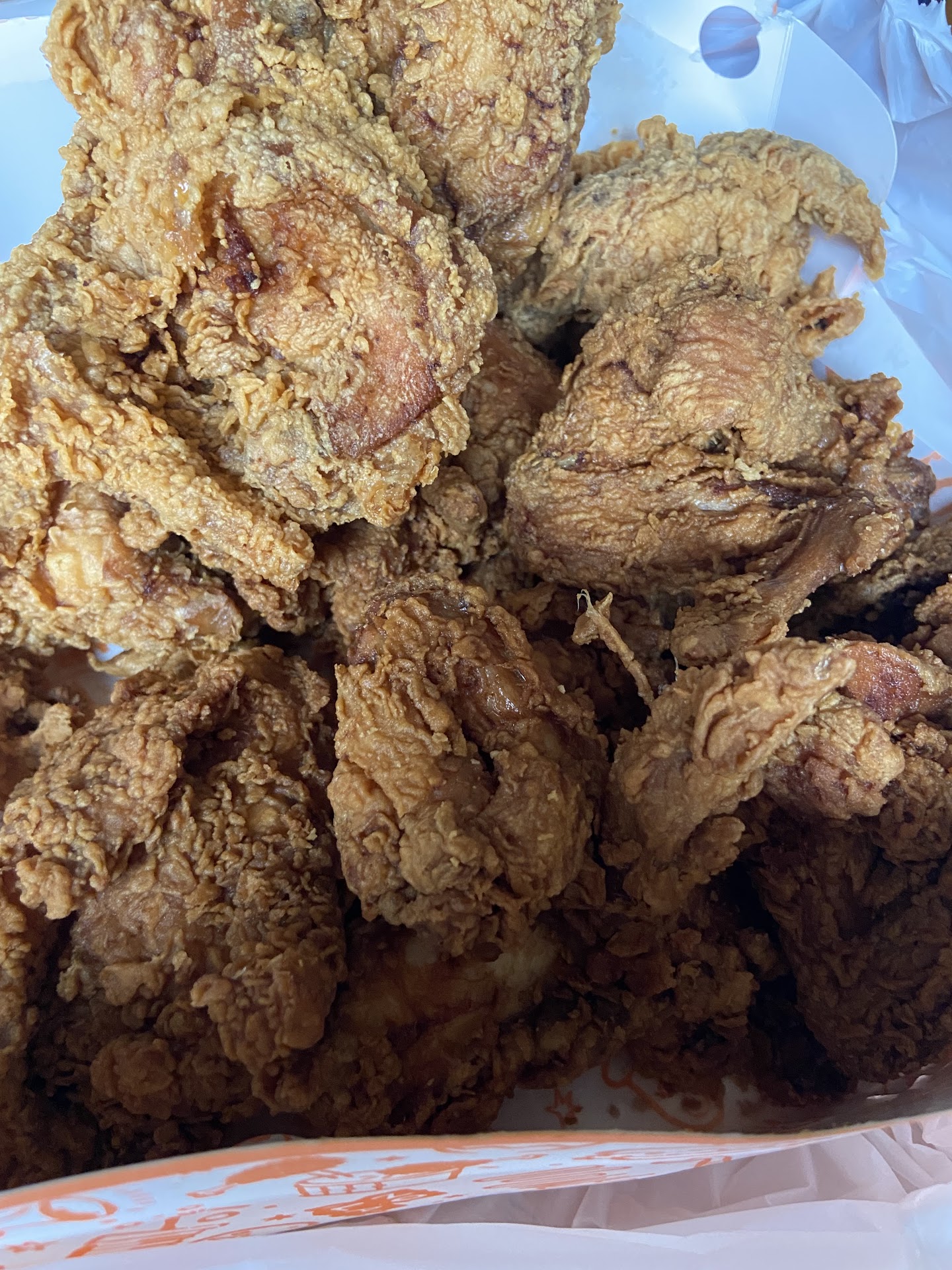 The coleslaw was barely average. The mashed potatoes were from an instant mix and were lumpy and way too salty. The biscuits were hard and definitely not flakey. The chicken tenders were some of the worst I've ever tasted: tough and overcooked, more like jerkey than tenders. Go to Chick-fil-A or Cane's if you want good chicken tenders. And the "butterfly shrimp" were pitiful. Almost nothing but hard, tough batter. Also way overcooked - tough and chewy.