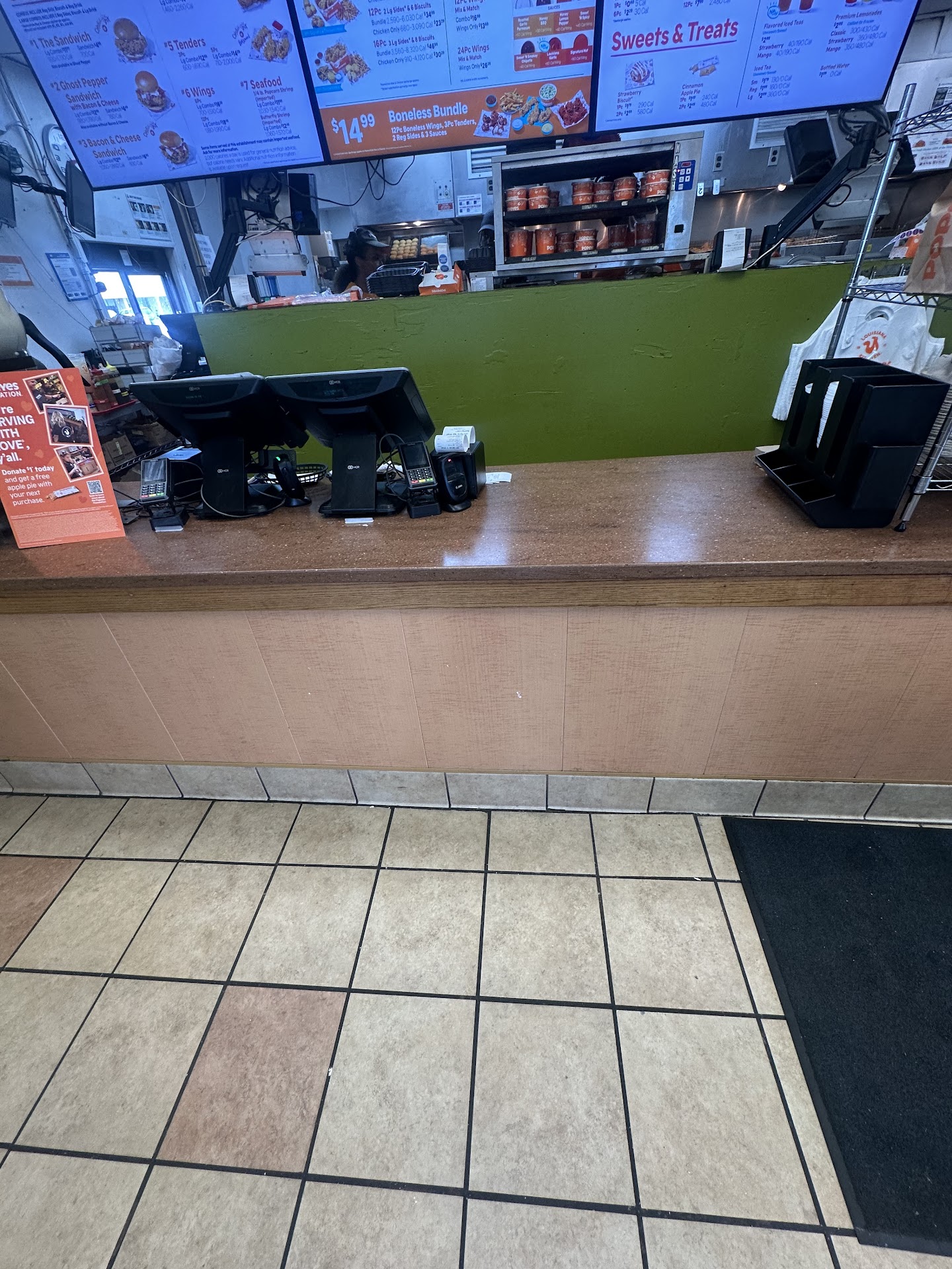 Read moreWhat I WON'T say is that I've had a recent extremely bad experience from this place. However, what I WILL say is whether you go inside or outside you better have a LOT of patience. Because you ma'am or sir, are in for a LONGGGGGG wait. And when I say long, I mean long. Longer than any so-called fast food joints should take to get you your food. What I find most insulting about this facility is that at many times I've been requested to backup in the Drive-Thru to run back over the marker so that it may read that two vehicles have gone through whereas only one has. So, the statistical value (which is probably like a 2:1 ratio) of what they are actually reporting for this business is totally inaccurate. For every one vehicle on average they've actually reported two.When I do consider eating at this business, I have to make the decision of whether or not I even want to go to this Popeyes because I am aware that I will be waiting too long. Also, to make it worse, they even request that you pull around to towards the front of the business and sit in the parking lot for an additional 10 or 15 minutes just waiting for two-piece meal. I will not say that I have gotten a particular bad batch of food. But, they need to learn to efficiently and sufficiently expedite the dispersing these meals. (Especially considering that it is the cost of a sit-down meal at most middle-class restaurants!) Food...