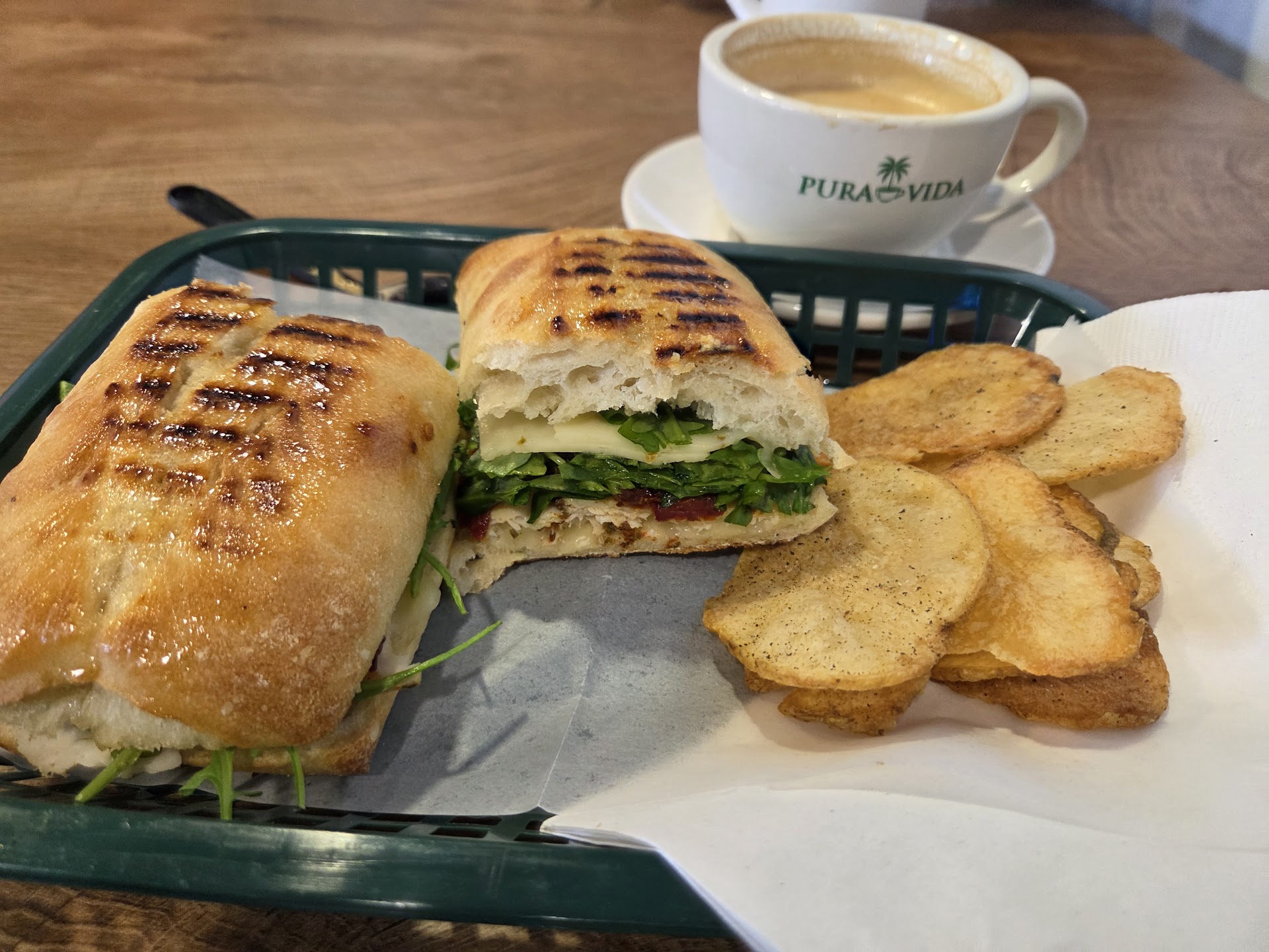 Read moreI expected Pura Vida to have great coffee, given the environment, but I was pleasantly surprised at how good the food items are as well! So far, I've had their Cali Club, Hot Honey Chicken, and Caprese flatbread sandwiches, and all 3 were REALLY good. I requested added chicken to the Caprese, and the staff was happy to do so, without any extra charge. Their coffee is also great. The Coastal Cruz and Coco(nut) Loco hit the mark! I requested "easy on the sweetness", and the baristas took care of it. There is plenty of seating area, both upstairs and downstairs. Love the...