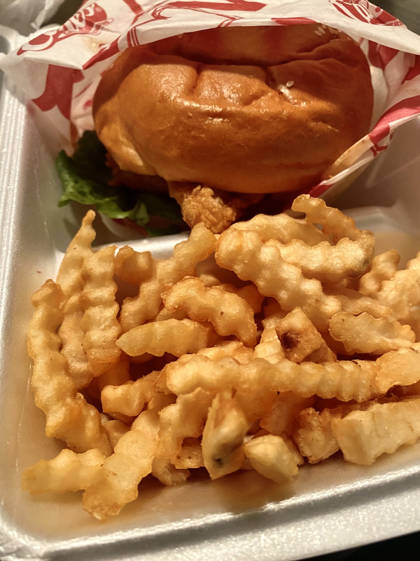 Read moreExactly the same as it always is. Very reliable. Outstanding chicken. Outstanding texas toast and french fries. Outstanding coleslaw. Every single time. But this particular store did not have outstanding service. The girl on the registrar was either speaking to someone one the phone with an ear bud in, I couldn't see because her hair was extremely poofed out of her hat and all the way around her head. Or, she was talking to the voices in her head, which is a sincere possibility. She did seem a little bit coocoo. Also, one of the other young girls working there stepped out of the kitchen and into the dining area, kissed her male friend, perhaps husband and accepted two 16oz. cans of what looked like alcohol beverages, but in all honesty she put them into her pockets before I could read the side of the cans. She gave 1 to a coworker upon returning to the kitchen, or perhaps was just showing it to him as she was trying to get it back, but the underage coworker would not give it back. I doubt it will be investigated, but someone should really monitor that store for other illegal activity because it also appeared as though another employee was handing a friend of his a whole box of uncooked chicken out the back door. I know it was not a food transfer with another store, as I could clearly see from their behavior this had not...