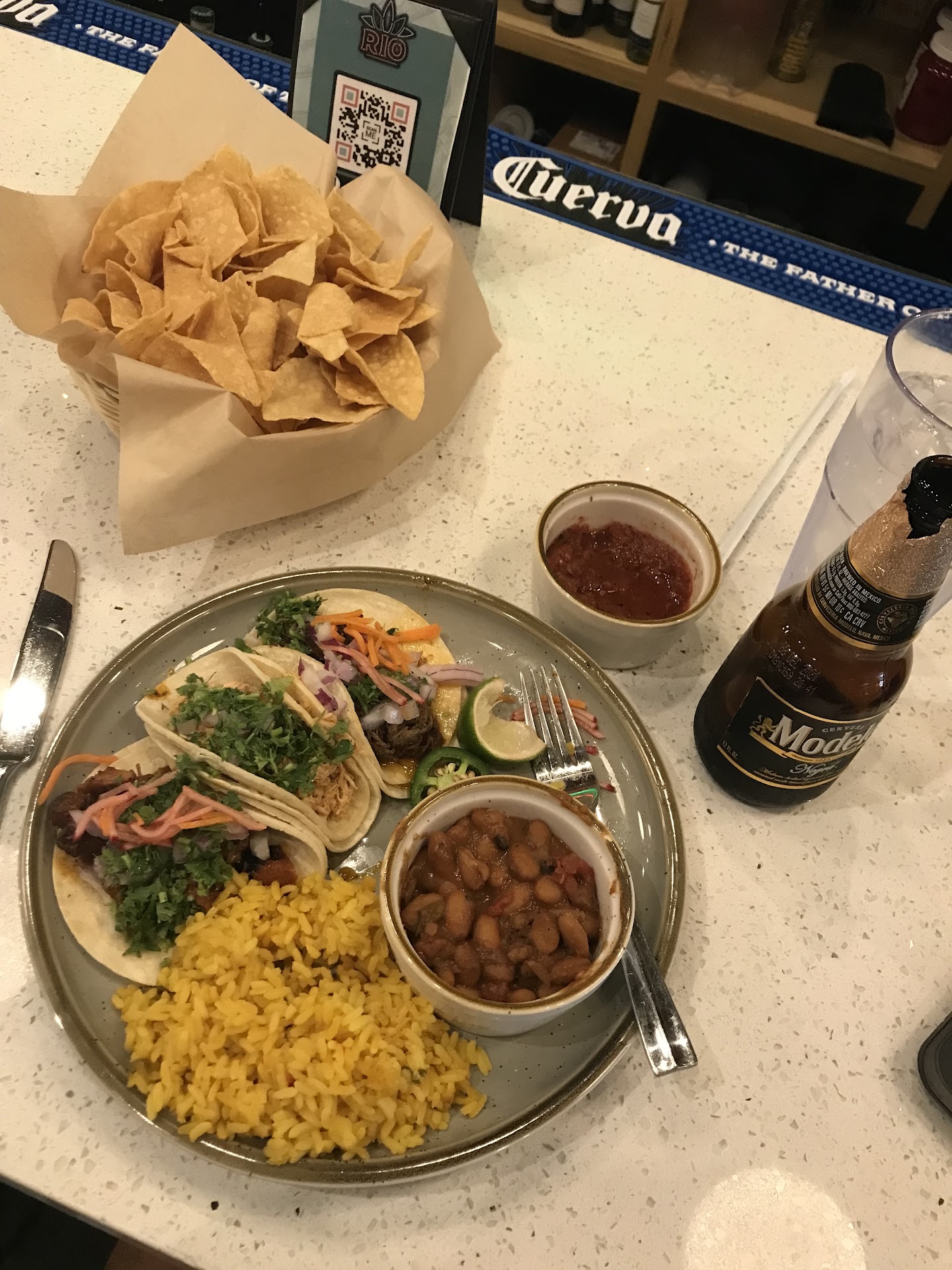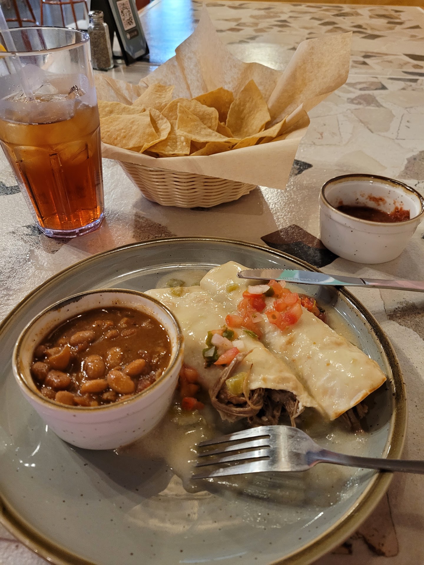 Fifth Impression - my wife ordered, my son ordered. I attempted to order a Chimichanga. The waitress informed me that the chimi is only available at lunch during the week. As a former GM of several service industry establishments, I understand seperate menus. However, if the kitchen is currently serving all of the individual ingredients of said dish, to build other dishes, why not oblige the customer? Every dish we ordered had ingredients used to make a Chimichanga. Aside from the Queso and Fish Taco, the food was lackluster. The street tacos weren't bad, but weren't good. The beans were more like southern chili and undercooked. The rice was bland.