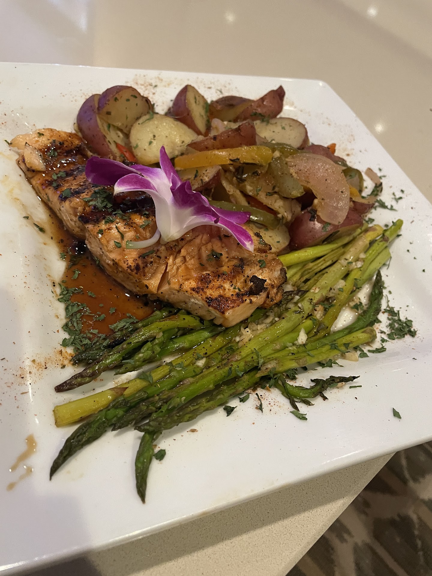 When my food finally did arrive, it was all served at onceāappetizers and entrĆ©e together. While I understand kitchens can be unpredictable, this is not standard dining practice and diminishes the experience. I asked the young woman who delivered the food whether my salmon had been sitting under the warmer, and she confirmed it had. I informed her the salmon was cold and asked that it be reheated. When she returned five minutes later, the salmon was still cold.
