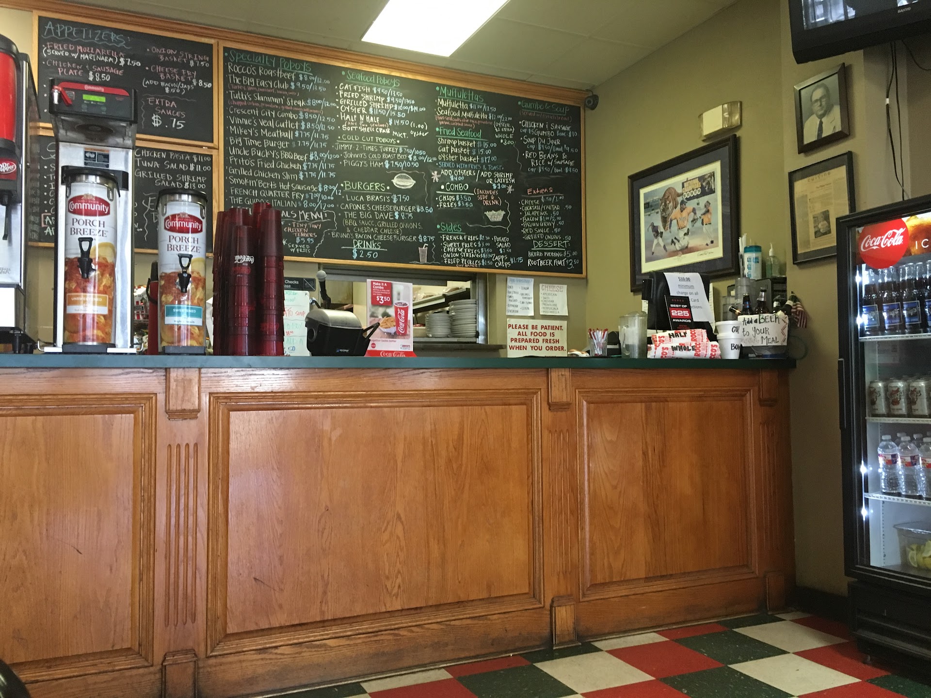 The seafood poor boys are good beyond exaggerating, particularly the fried/grilled shrimp andâ the catfish. The fried oyster poor boy and the roast beef poor boy are equally good, but not my tippy-top favorites because the oysters are, well, OYSTERS, and they are so rich and intense I only want them about once a week. As to the roast beef poor boy, it is delicious but requires some logistical planning to eat, because because it is so messy. First, tear off several paper towels from the roll on every table, and tuck them into your collar like a bib. Then either eat the sandwich with a knife and fork, or (for the daring) pick the sandwich up an eat it like a conventional sandwich, bite by bite. Either way, your attention is directed to the roll of paper towels on the table to blot the lips and wipe the fingers. OFTEN. Finger bowls or moist towelettes are NOT provided.
