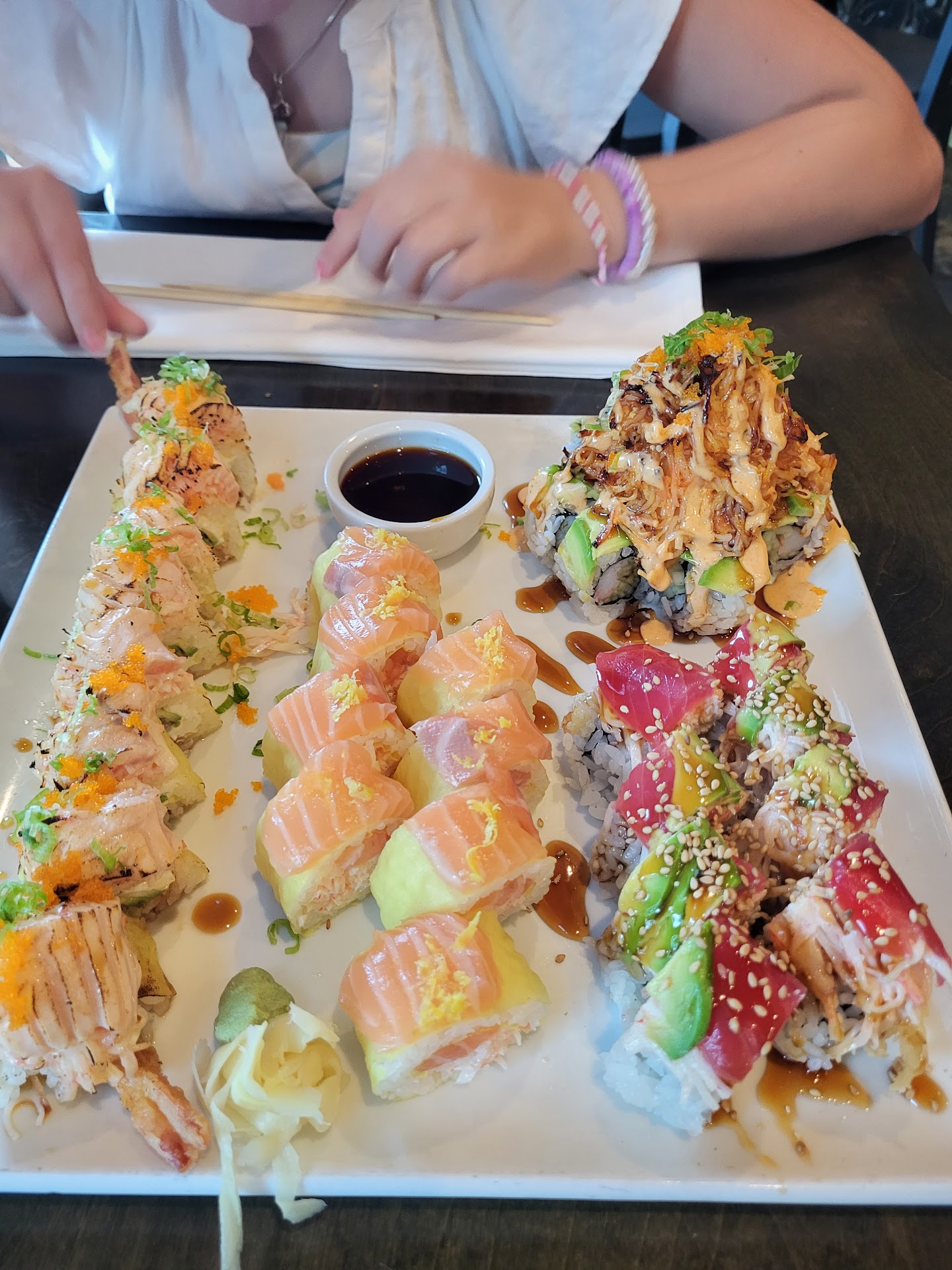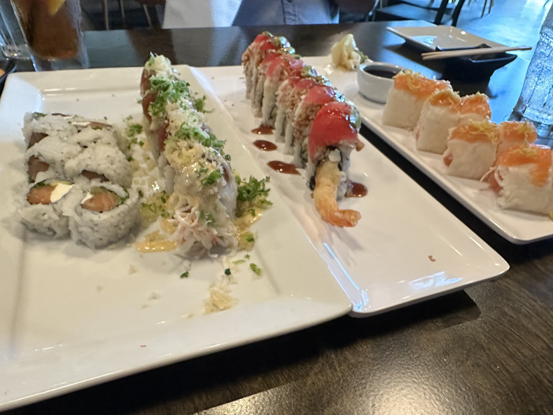 Read moreEaten here many times over the years, (we drive 2 hours to enjoy the food and service), but tonight was disappointing. It took over 30 minutes to get our order, the food was no where near as fresh and flavorful as it used to be. They had a crowd outside waiting in the sun and made people wait several minutes past opening (even though we could see them screwing around inside and they most definitely saw all of us), tried to seat us in the hot sun after sweating outside, then we moved to where everyone else was going (cooler area) as well. We then got our drink orders and she just sorta disappeared for a little while. Finally took our appetizer order and eventually took our sushi orders. Appetizer came out quickly but the sushi was 30 minutes later-5 rolls total. The avocado was not fresh and was turning black, the fruit (mango) was warm and chewy and the fish was warm and not “crisp” as it should have been, very chewy and blah. The server was nice but was inattentive and I think she was training a new girl, not sure that’s going to work out, but it was disappointing. There are too many other options closer to home that we will be utilizing in the future. Sad, used to be worth the drive and high price, but...