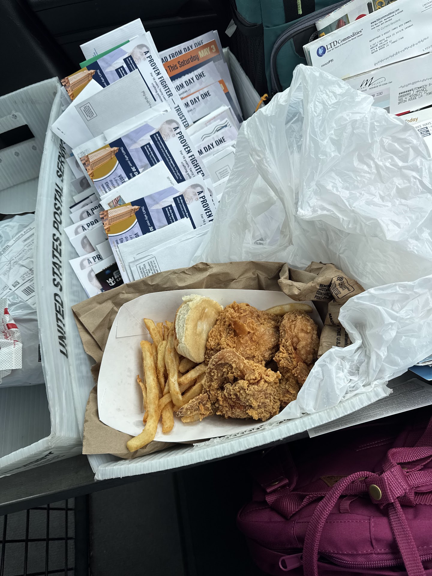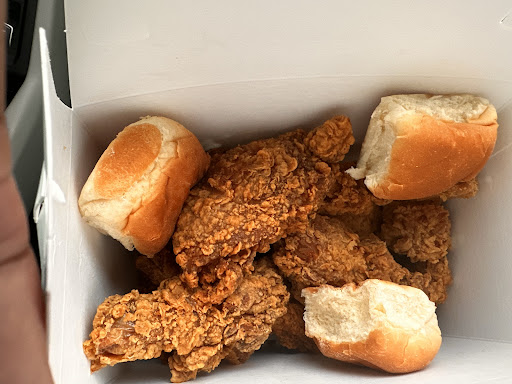 The food was pretty good. The atmosphere was cool. However the service sucks. When we walked i we had four people in front if us. 3 guys had already ordered and one guy was placing his order. As we got to the counter and placed our order we stood for around 10 minutes. They had some chicken in the warming area. Theu staff seemed like they were not sync with each other. Tickets were piled up and everyone was just standing around looking. So we decided to sit down they 3 guys still had not gotten their food. I saw one worker come to the front cou ter and check his cell phone. He then went back and did not change his gloves,and started prepping food. That raised a red flag for me. Another 10 minutes went by, so by the time I got up togo check on the order they were bringing the 3 guys their food and the other guy was at the counter ter asking about his. So the lady said I was about to bring it out. As we sat down to eat the chicken was hot moist and good. Biscuits were soft and buttery. I would strongly recommend hiring more wait staff. One guy was at the drive thru waiting while we were eating. He had to come in and check on his order. You may get away with slow output time at your...