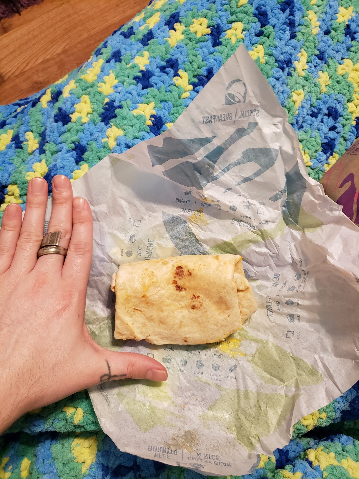 I believe this was the staff saying "I think your homeless we don't want you here don't come back." By making my burrito this poorly and getting the order wrong in a lot of other ways. Which jokes on you I do have a house, I just wasn't dressed that well that day because I wanted to be comfortable while I was sketching the scenery. if you guys think I'm over exaggerating here here is a picture of the damn burrito below. I also ordered cinnamon twist which I didn't get, all I got was chips and those chips didn't come with the queso that they usually come with. I also wanted guacamole in that order, I opened my burrito and I didn't get guacamole. However since I was tired from trying to find something good to draw I didn't want to bother anybody about this until I start eating the burrito and halfway down I noticed it has a awful lot of hot sauce, and then it starts spilling over the damn paper to where I have hot sauce everywhere and then I open up the burrito and this is what I find a hell of a lot of hot sauce that I know I didn't put on that burrito. You people need to get your damn staff in check.