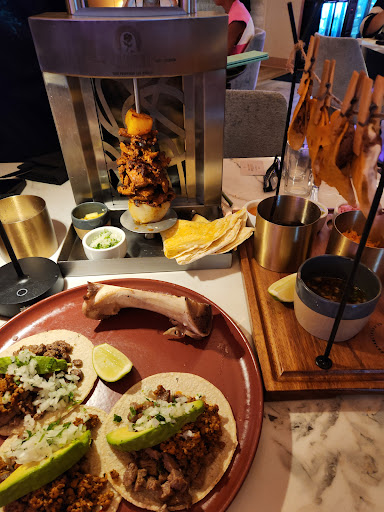The food itself was good, albeit a lot of items were priced seriously high for some reason and I could not decipher why. Also, the portions are really small for the sushi and app items for the price. We tried a little bit of everything on the menus. From the custom cocktails and margaritas, appetizer (Esquites Croquest), a sushi plate off their "secret" menu (some kind of dragon roll), a couple of taco dishes (bone marrow wagyu campechano and the el tendedero de birria), and the trompo al pastor main. Disappointingly, a lot of menu items were not available too, as I was trying to order. This was odd, given they didn't seem all that busy, but that could be due to poor management again.