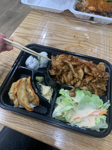 Read moreTHIS PLACE IS AMAZING. I got their Chicken Bento Box, and I was immediately in love. This meal not only being very affordable but is also very delicious- having: Chicken, fried rice (or white/noodles), 4 California rolls, 3 dumplings, and a salad- a whole meal for literally $10.99!! Service very friendly and just overall kind, the place is a bit small, and looks new. The place has an aroma of the food being cooked fills the place making me hungrier as i waited lol (which wasn't a long time). I will say their drink selection is lacking only having plastic bottled Coke product, but i’m there for food, not drinks. Same could go for the decor, only having minimalistic style tables and chairs, nothing standing out for decor. Overall a nice atmosphere, stellar food, and pretty easy menu to follow. I’ll be coming here a ton when i’m at this side of town. Loved it!! (Sorry for bad...