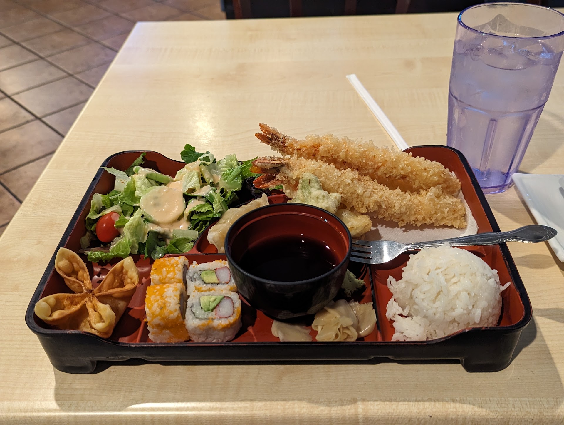 This whole sushi lunch special came with a bowl of miso soup for just $13.
