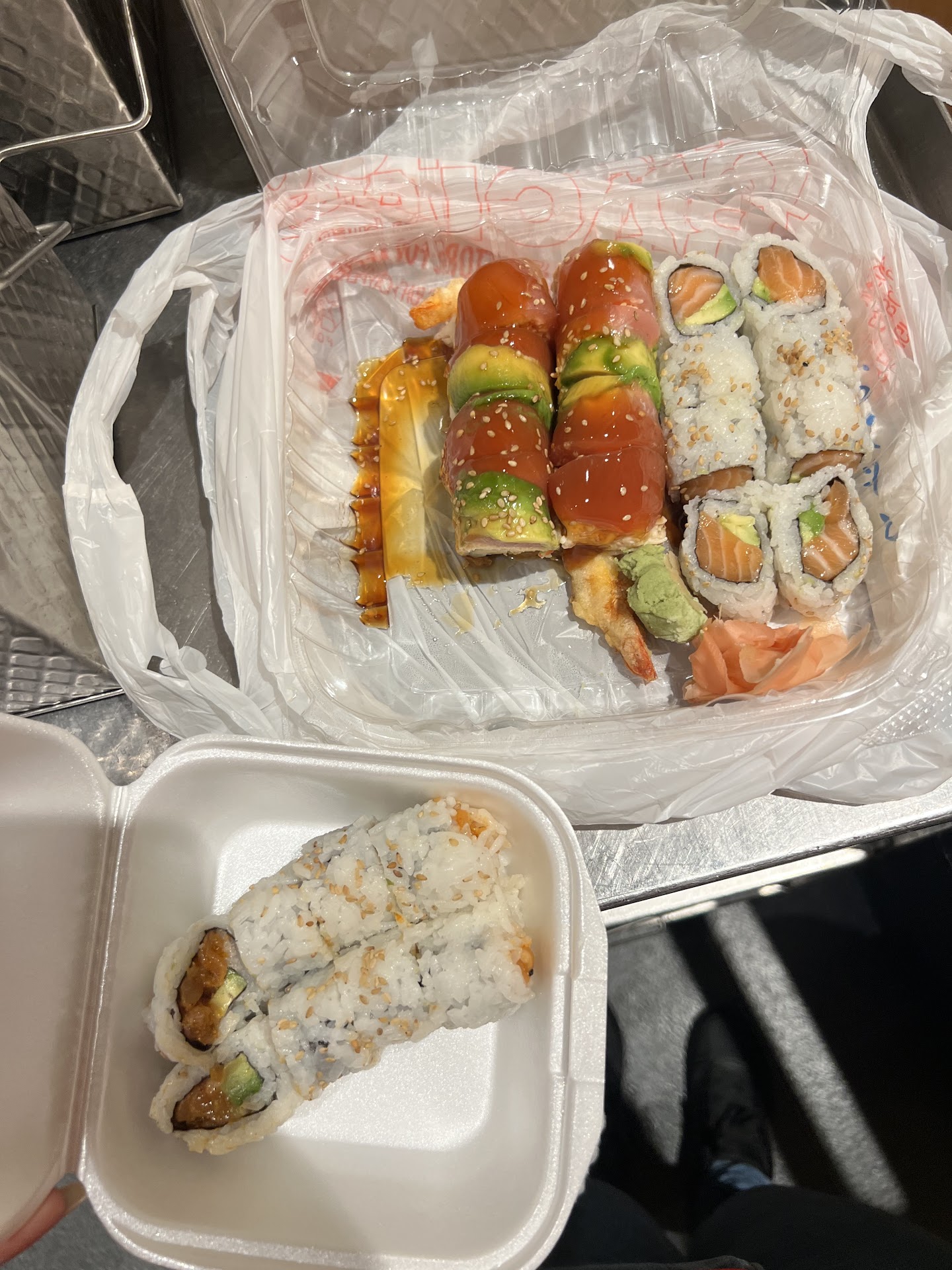 Read moreThe place is gross. The bathrooms look like they haven’t been cleaned since pre-COVID, the air vents are black with filth blowing over the fish storage and prep station, and the person making sushi was playing on his phone and wiping his maskless face with the same gloves he was touching the fish with. The only reason I ate the food was because I’d been on the road for way too long sans protein & another man came out with fresh gloves to make my food. The energy in the building was not good and I felt anxious just sitting at a table. The sushi was not awful. I assume the good ratings are from college kids. On the flip side, everyone that eats here often probably has a good immune system. That’s one way to...