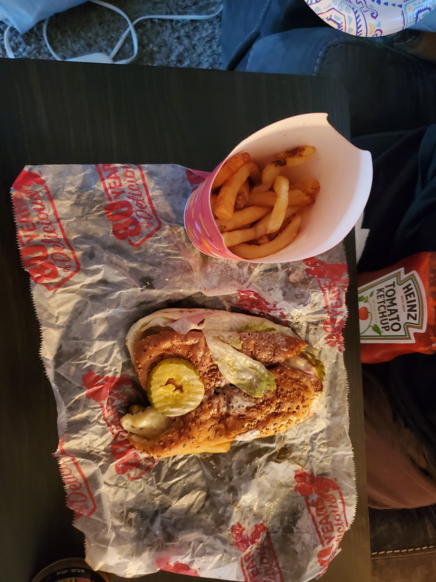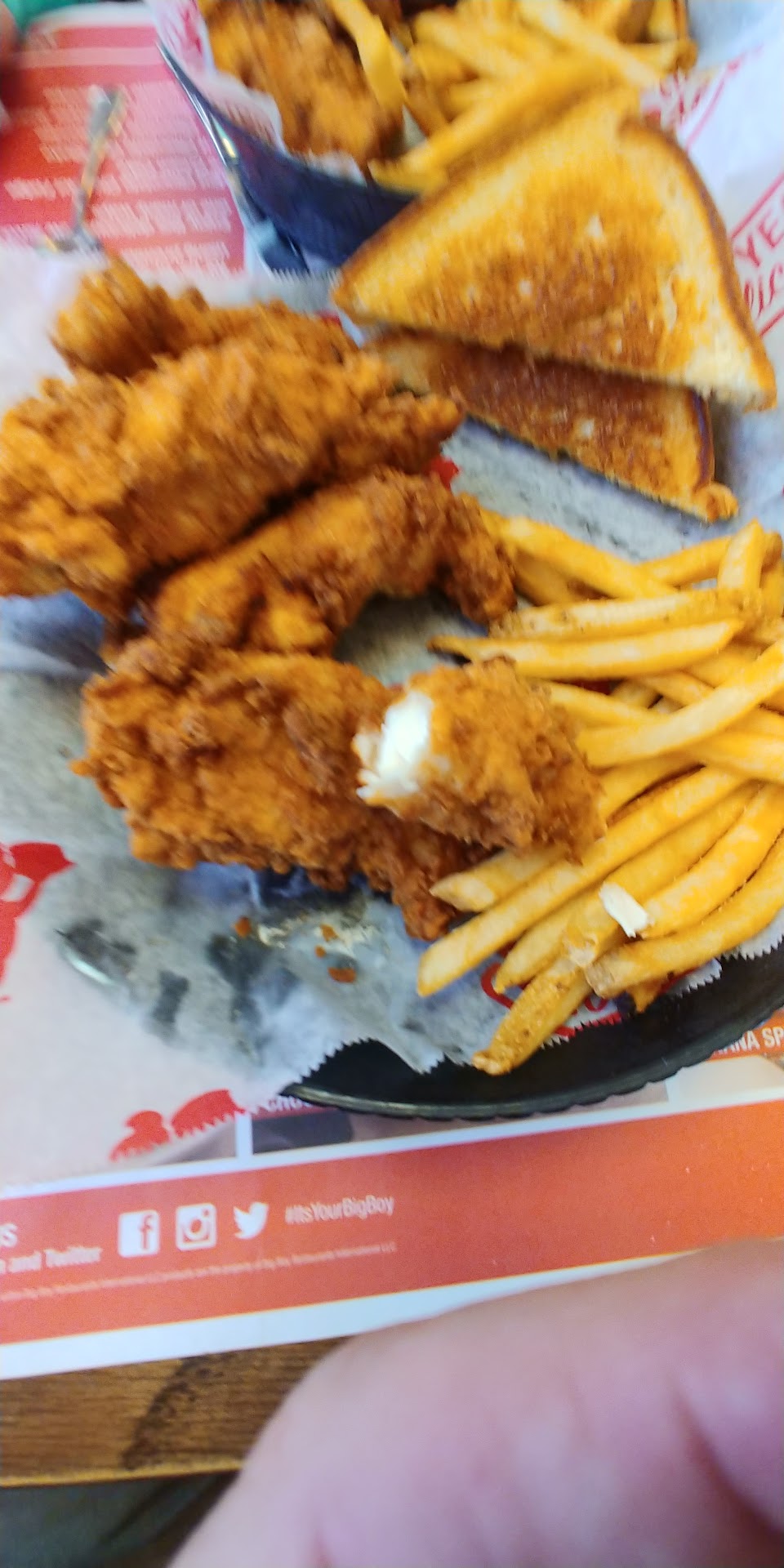 We got take out because: Covid. The wife got her usual which is the Slim Jim basket. When I arrived to pick up the order the associate asked the cook for the fries to complete the order and she quickly jammed this half empty pack of "French Fries" into the bag and stapled it shut so I couldn't check my order before I left.