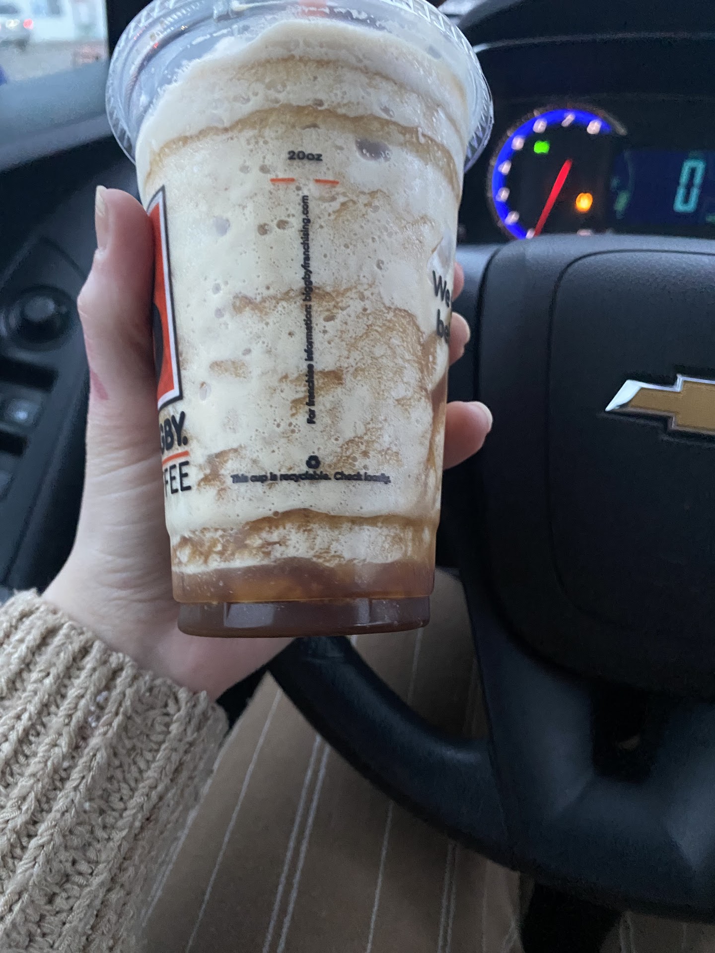 It’s supposed to be a frozen vanilla bean latte with an extra shot, but I taste no vanilla and it is extremely bitter and not mixed well at all. There was also no whipped cream on it, which I usually just let that go because I get some locations want you to specify whipped cream for some reason (the drink is supposed to come with whipped cream when you order it as is, so this is a minor pet peeve of mine.)