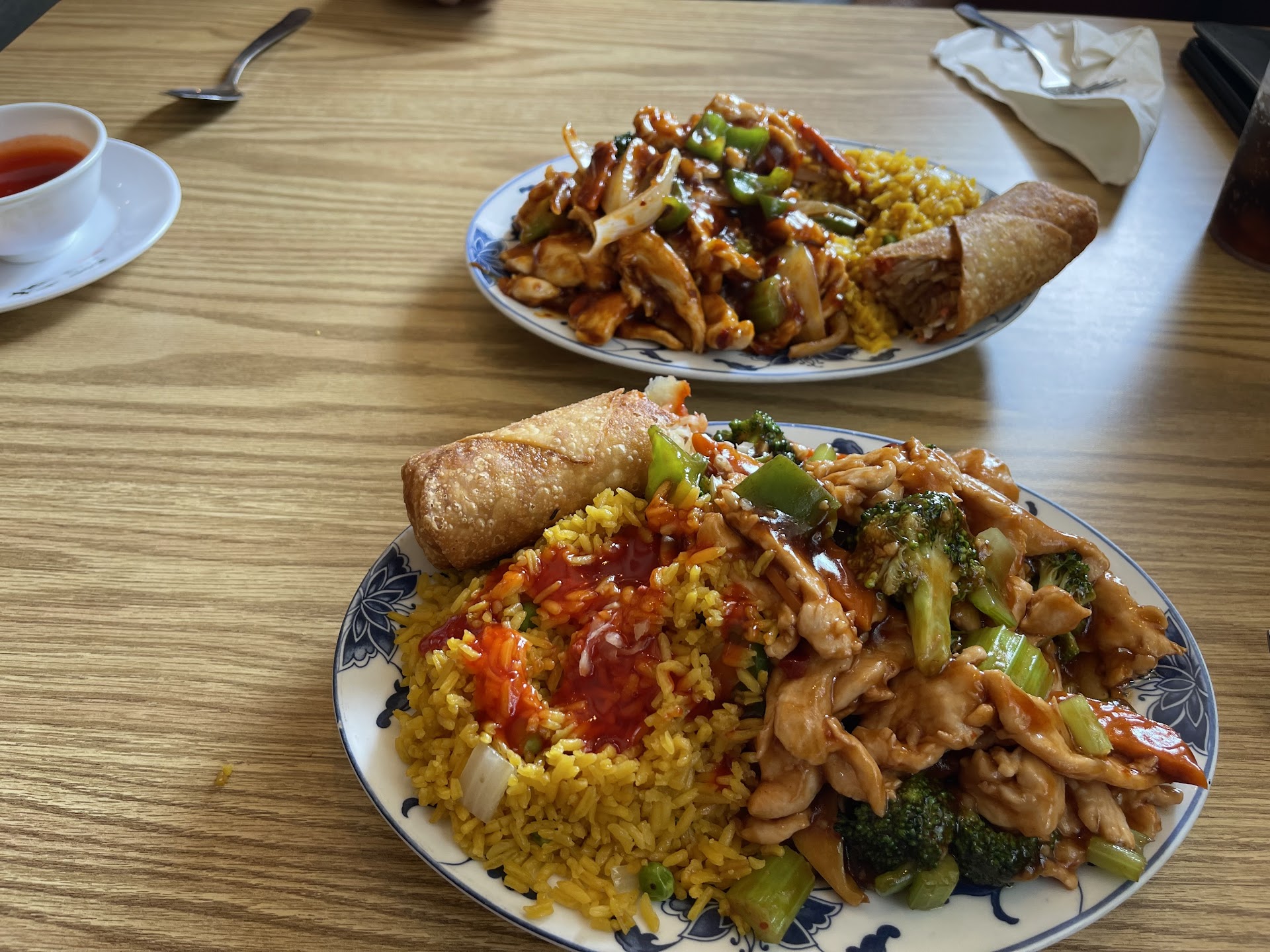 The shrimp fried rice had a sparse amount of small shrimp. Unflavorful, yellow colored rice that clearly was not seasoned with any soy sauce (or anything else for that matter). I'm not even sure it was fried!! The cook tossed a few frozen peas and carrots for good measure and served it up plain, tasteless and bland.