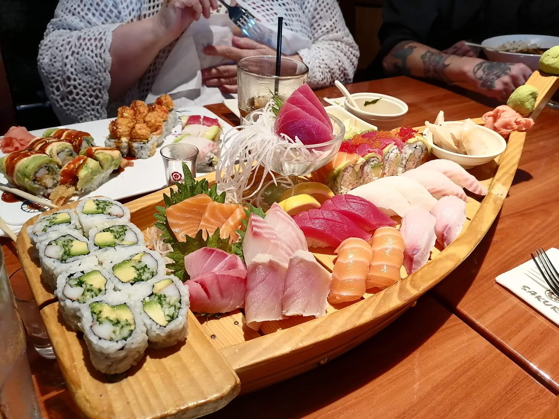 Read moreI have a wonderful time every time we go to Sakura. The food is amazing, and everyone is very welcoming. Short story, on September 26th, i got married and we decided to have our reception on the other restaurant across the street to experience the hibachi for ourselves and 4 other guests. We had a reservation there but they decided not to seat us because one of our guests was arriving late. Me and my husband was wearing our wedding gown and suit, waiting in the short couch. We were treated rudely there, and they wouldn't allow my mother inlaw who was disabled to sit even on one of the chairs. Anyway, we left there and went to Sakura instead. We had no reservations, and yet we were seated immediately and were treated like kings and queens. We were there for almost 3 hours, having fun with our small group and i believe everyone had a great time. The ambiance was nice, and the sushi rolls are amazing! There was a selection of sake, and some other beers too. We had the lovers boat, which was amazingly beautiful and the sashimi were fresh. Great food, great treatment by the staff and wonderful ambiance. We had an amazing wedding reception...