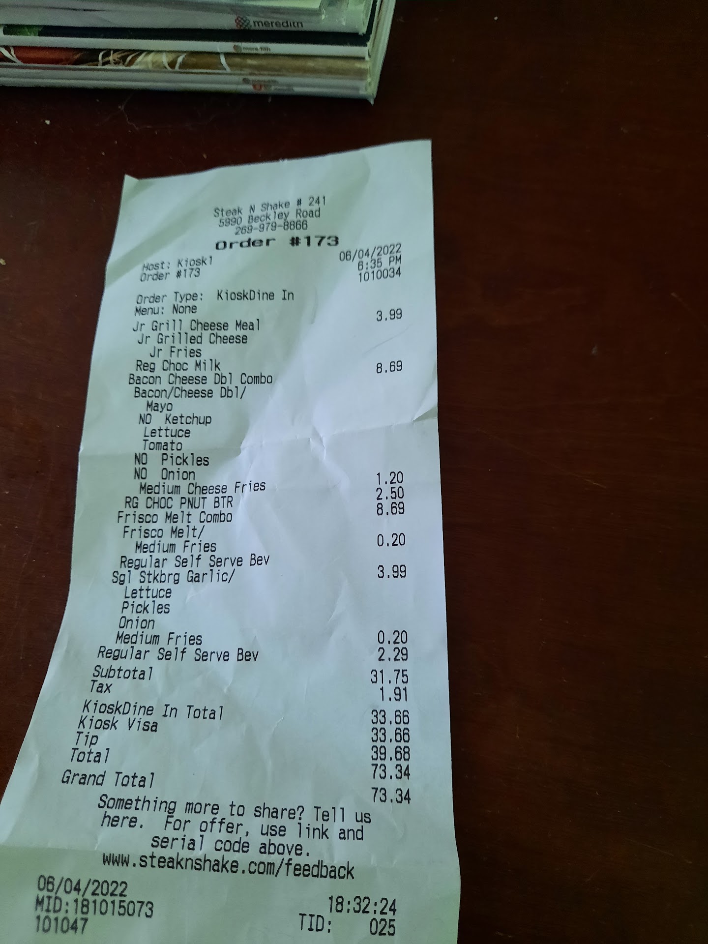 My sister and mom were on a girls day and we stopped for Steak N Shake for our lunch. When you walk in...hmm There is no one to greet us and thinking where is the register.. Well NO you have to got to a computer and order your own food on a Kiosk. Ok... We will give this a try. Well for starters. My mother is over 70 and she if she had went by herself she could not have ordered food and would have left. So, I order our food through the kiosk. We pay and get the receipt and an extra ticket. We preceded to find a spot to sit. The booths were disgusting. So I go up front to the counter where you can see the cook cooking to ask where there is a wait staff to clean the tables or if there was a washcloth as I am never opposed to clean the space I want to sit in. His response "oh she is somewhere just look over by the pop machine and she should be there". Ok go over to counter by pop machine, girl is running everywhere and I asked her if she could clean the table or had a cloth to wipe down the table. "I will be right there". She did eventually come and clean the table. We get sat down. My mom had ordered a pop. Grab a cup and try to work the pop machine. Would not work. Again had to fine the wait staff. She states " oh when you get your receipt there is a little code that you have to put under the scanner and then the machine will turn on". Ok there again no communication of that was a thing. Get the code and filled up my moms cup. Then preceded to wait for shakes and food. Here my name called. Got up and went to the counter to get food and shakes. We ate our food and had conversation. While we were eating NOT ONCE did see the wait staff to check on the many other customers that were having the EXACT issues especially with clean tables and the pop machine. So unfortunetly the wait staff did not get a tip due to that we had to keep asking for help and no communication from the wait staff and to boot there was only one person. But that should not matter when clearly in the back was several more people.