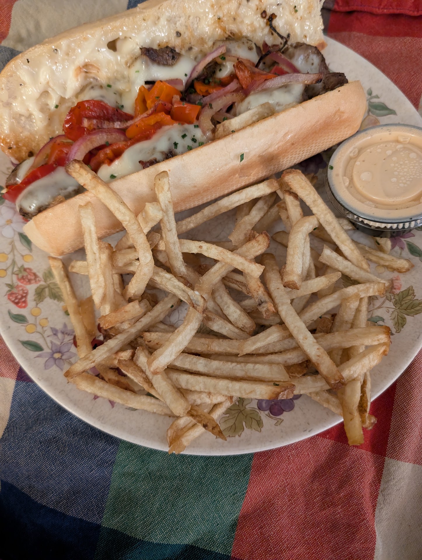 (Past review 4.5 stars) Love the steak and cheese sandwich, it's my go to! The steak is always tender and usually cooked to medium rare perfection. The fries could use an upgrade, but I like them better than chips. The pickle is not my favorite flavor (house made I believe) but the chipotle ranch is a great dip to add.