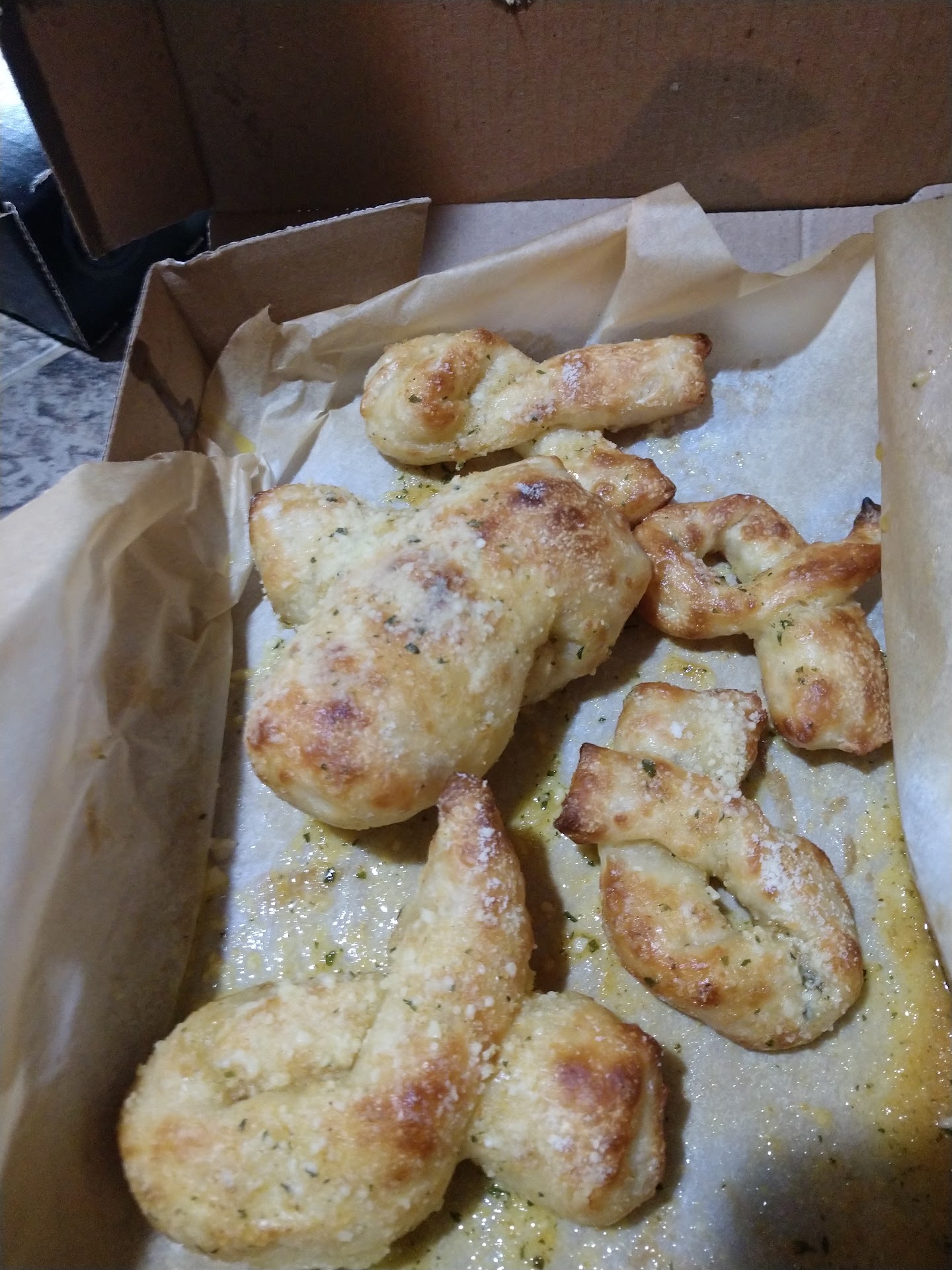 Read moreThis past thurs Dominos got the order wrong, I called said they'll send out replacement and ordered 2 Parmesan Twists , I asked that they please don't overbake them keep on the lighter side like the first order, said sure. Delivery came and pizza was right, Parm Bread Twists very dark, I assumed misunderstood me, and even though they were delivering replacement pizza they changed me fee for the Parm twists. Called Sat. talked to the manager and she said because I waited one day to call, that they couldn't replace the twists or help in anyway. Said she's been trained to tell customers this and there isn't any way on her computer to do anything else. So where does the human brain come into this scenario? Lost...