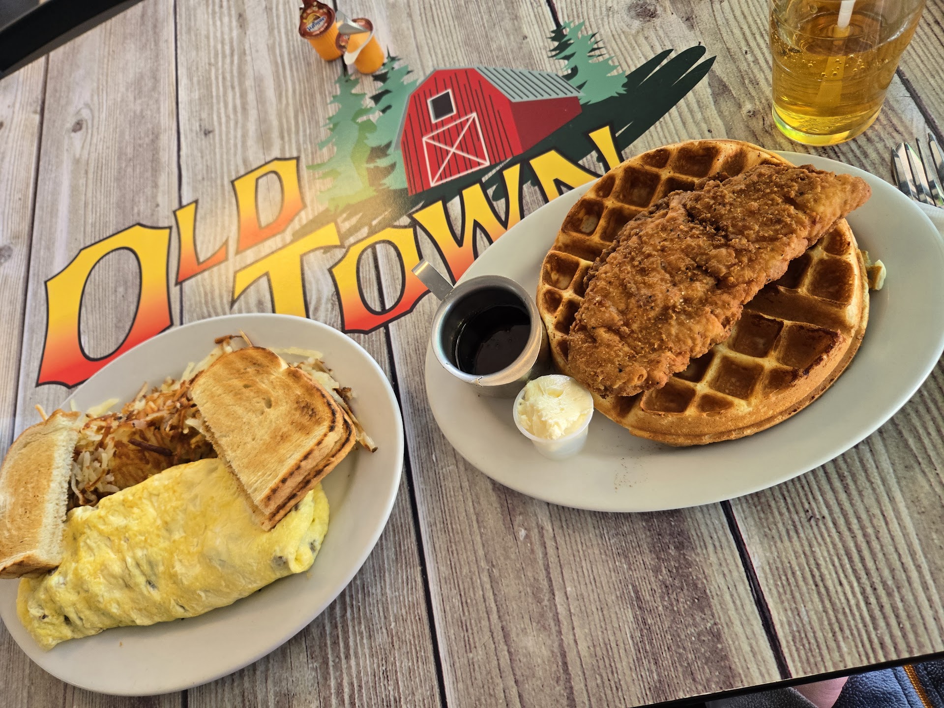 Read moreWe went here because there's almost nowhere in battle ground that serves a decent breakfast. I can cook but sometimes I don't want to. When I go out, I hope it's as good as if not better than I can make when I feel like cooking. As expensive as food has gotten, some places are just straight up taking advantage. Well Old Town is not having it. They sell greasy spoon food at greasy spoon prices. It will get to your table in approximately "when we say it's done" minutes. The building can hold entirely too many people to feed in an organized manner it turns out meaning the noise can be a little... Much. If you've ever been to a waffle house, then you've had old town's food and dining experience. It's almost indistinguishable, inconsistencies included. For example, I don't know how you can have one plate with ice cold eggs and scalding hot hash browns touching each other. Sometimes you just get the "itch" for food like this. Less frequently, you probably get one for the experience of an old school diner with laminated menus stuck like glue to Formica tables from a recent sopping wet wipedown. Screaming children and hung over adults litter the place on the weekends while the wait staff does its best. You know, it's probably best to just avoid this place during the weekends. Yes, Google will say it's "not very busy." If you still trust Google in this day and age there's probably something wrong with you. Conversely, there's nothing wrong with Old Town. It's exactly what I expected, and on extremely limited occasions, wanted as well. It's like 1/2 a mile from my house so I'll definitely be...