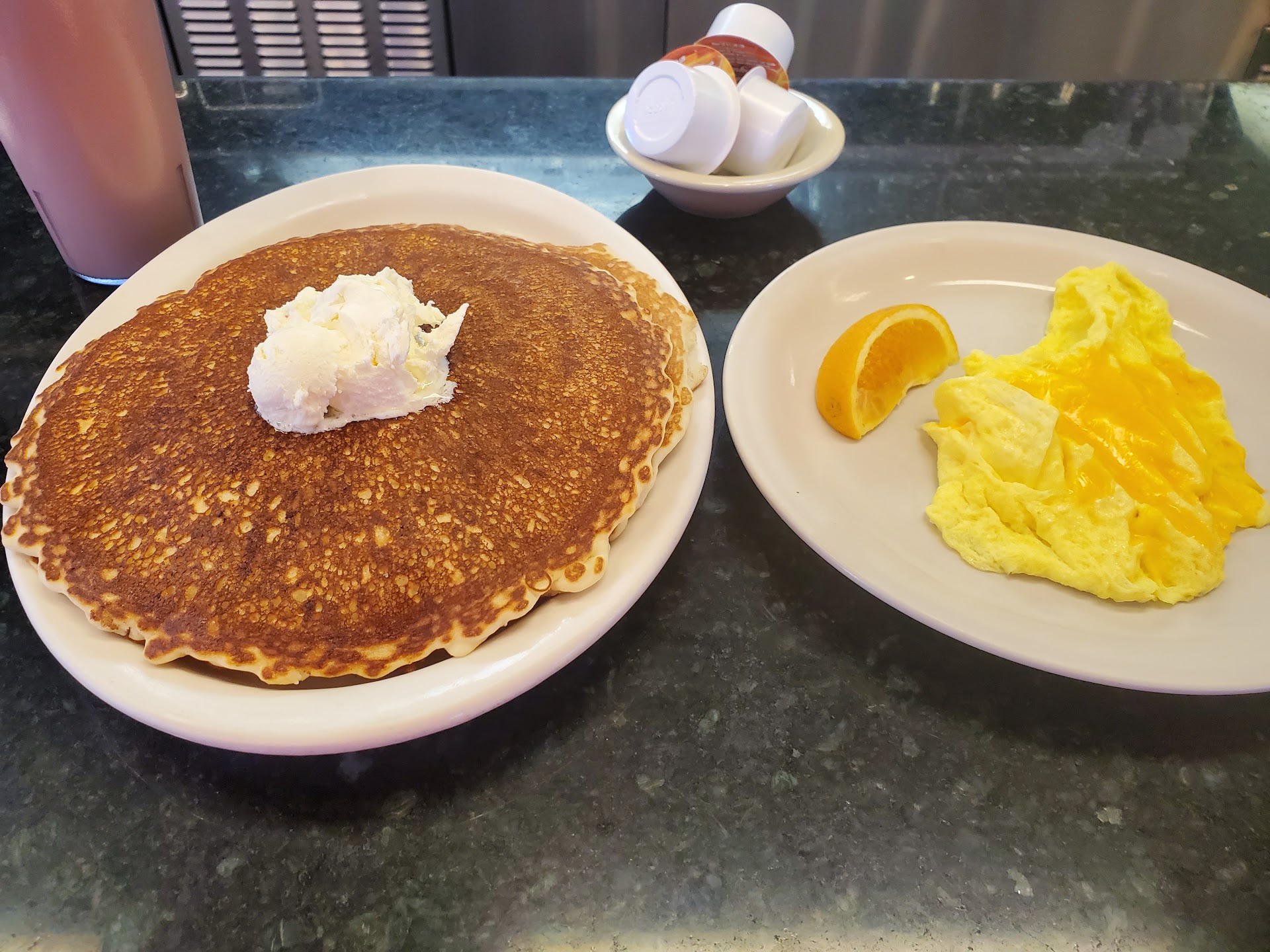 The taste was such a compliment after eating the wonderful ranch omelet. The 2 pancakes came topped with butter and were good sized. They were so light and fluffy!