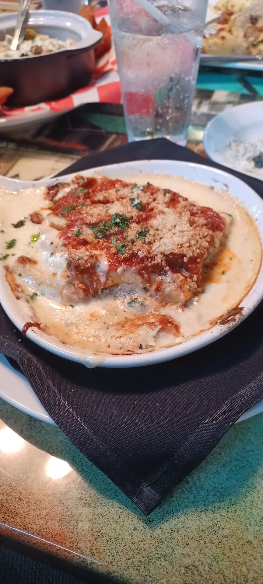 Read moreDisappointed. My friend and I ordered the Chicken Cannelloni to share after the waitress told us the serving sizes were huge. The meal came on a small dish with a handle and contained 3 short small cannelloni. In comparison to the enormous bowls of Chicken Fettuccine and another pasta dish that our other friends had ordered, the size of the Cannelloni was remarkably small. We were well into eating our meals when the waitress returned to our table. I told the waitress that my food was not hot and she offered to microwave it, I declined. My girlfriend commented that she felt there should be more bread provided to complete the meal experience, ie: bread service so the waitress said she would send over the manager. When the manager came to the table, I said that my food was not hot. He made some remarks about my liking to be burned and seems to play down that my food was not hot. He offered to reheat it or replace it, I can't say for sure because it was very noisy and others were speaking at the same time. I told him that we were sharing. He never said anything else to me about it but engaged my friend about the bread and left the table. I continued to eat food that was not hot to eat, and felt a bit befuddled. In addition to my food being cool rather than hot, I found the salad portion for a table of 4 people to quite inadequate. The lettuce was wilted and beginning to turn brown as well as soaked in dressing. Certainly not what I consider a salad. The lettuce should be crispy and the dressing should be light to add flavor, not drowning the lettuce and veggies. The lighting was very dark in most areas and overly bright in the area where we were sitting. The music overhead was too loud and distracting rather than a pleasant background effect. As well, the noise from customers was very loud and disruptive for the level of restaurant it appears to want to be and for the customers it seems to want to attract. I felt like I was more at a Chuckie Cheese pizza joint rather than an upper scale restaurant. It was very difficult to have conversation and to relax and enjoy our ladies birthday night out. Was really excited to hear about the new Italian restaurant in town. Sadly it turned out to be disappointing. I wish them success but I don't think it is for me. I want my meal out experience to have tasty food properly prepared and at the temperature it should be, excellent service, a relaxing quiet atmosphere, and attentive management who properly addresses the customers concerns, without jokes and before moving on to another customer.