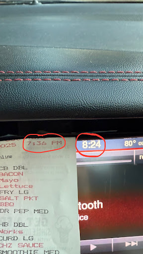 My son and I could have waited in the traditional line that was several vehicles deep. Instead we used the security booth checkout and had our food while the last car in line had yet to order!