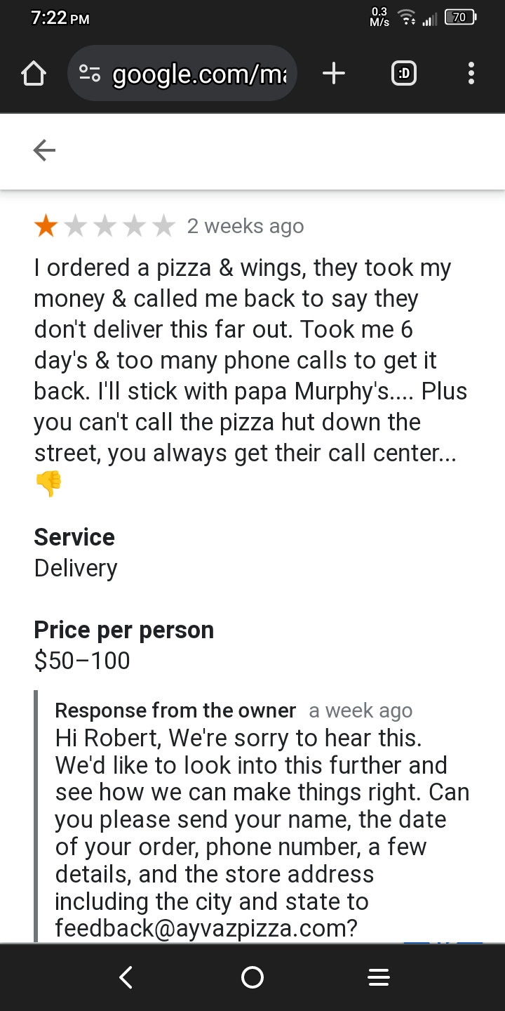 Read moreOn my September 4th order, I was not given what I ordered. I called and they said I would receive a credit on my account that never showed up. I no longer trust Pizza hut to give me what I ordered or do what they say. We tried it once more and everything was only so so. Until I am refunded, I will be sure to tell everyone how I was cheated and go to dominos or another pizza place. The did reach out to me and offer to make it right, I will see if it happens this time. I will say this person had a good attitude and more believable. I will give them the chance to...