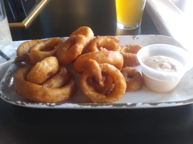 The complete lack of slippage, despite the absurdly moist onions, spoke to the homogeneity of the ring's texture. Every bite was like chewing into a greasy sponge.