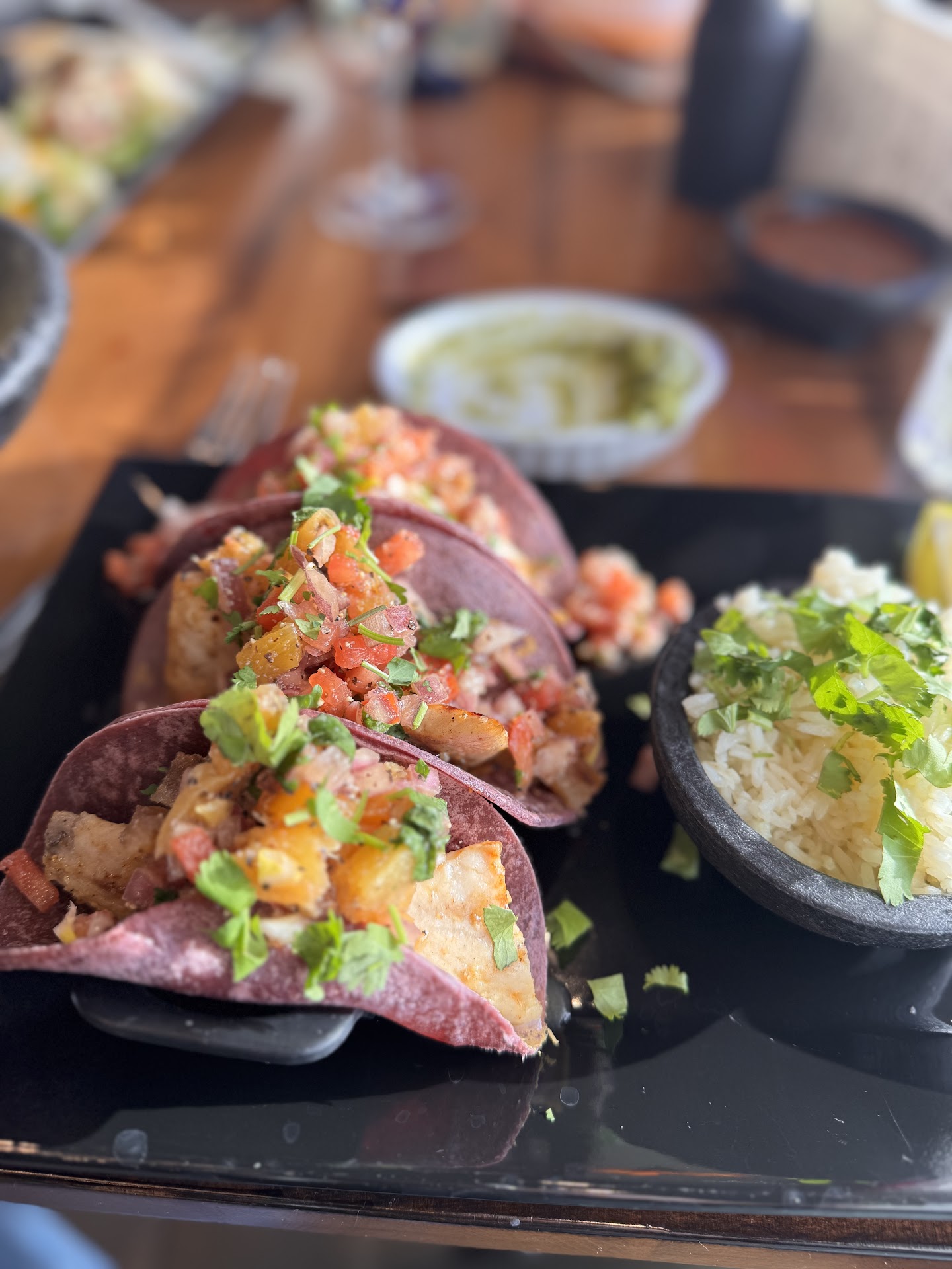 I was so excited to try this place!! It took quite a while to get anything to drink, and even longer for our food. Tables are so small so it was hard to eat and have drinks on the table for a party of 4. The music was so loud, and it was the same 5 Pitbull songs over and over. Was very hard to make conversation. Especially with the celebrations every 5 seconds - which I get, itâs an honest effort to keep things lively but it seems to be overdone. When youâre pulling your servers away every few minutes, they forget part of your order. We ordered appetizers but the server forgot to put them in. There was only ice in the first round of drinks. Waited a very long time for room temp meat but hot rice/taters. The taters taste like theyâre loaded with popcorn oil lol. A friend ordered a drink that tasted exactly like the smell from welding metal, or chewing on smoked leather. The sides being Al La carte for $4 each is crazy. I would have ordered the Carne Asada but it would have only came with a slab of meat for $25 and sides sold separately? I recommend going to Los Pinos for all your Mexican cravings!! I see the vision and wish it well. Itâs a hard business with competition up the wazoo. Good luck, but I just...