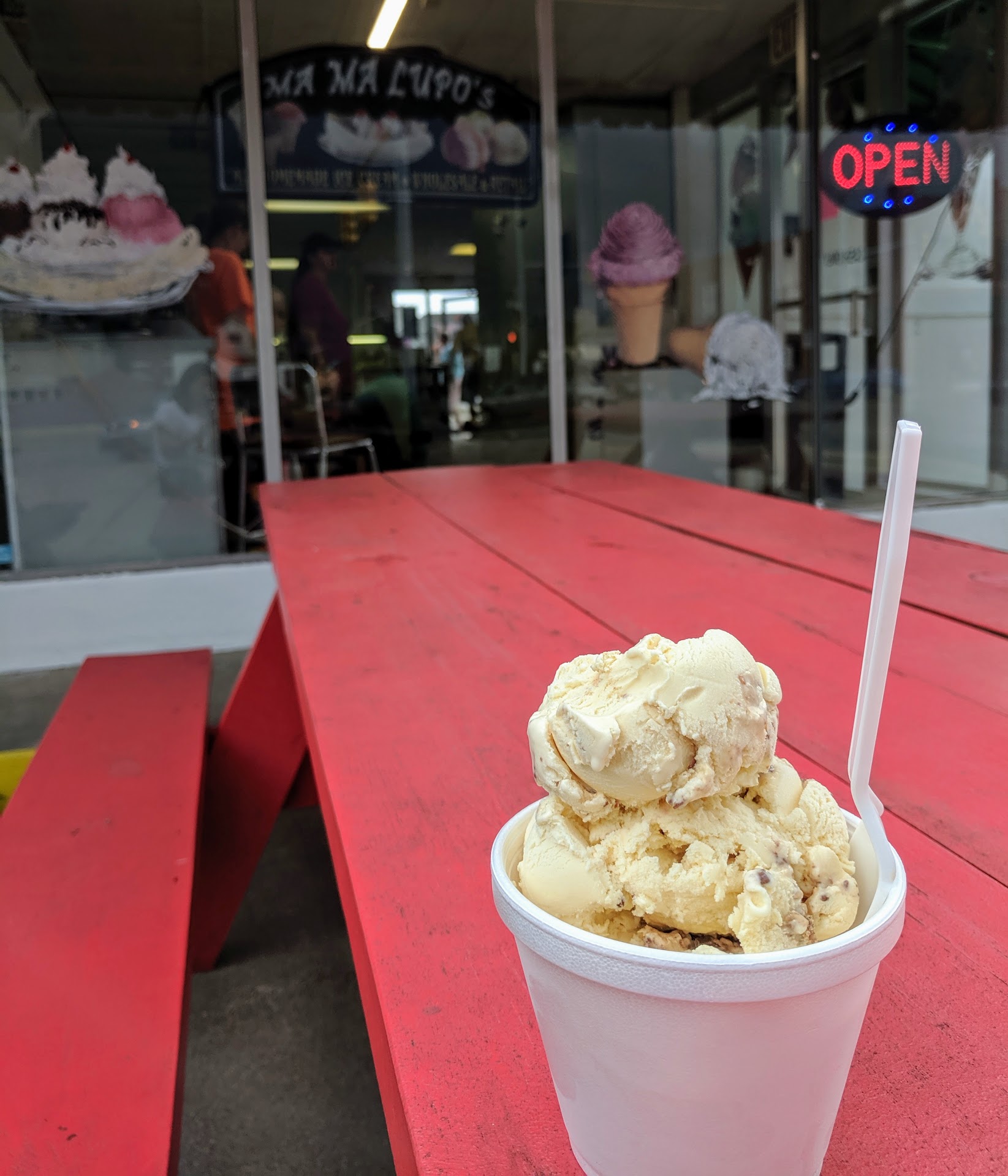 Unique Mama Lupo only selections for the adventurous as well as standards for the traditionalists. Every choice pops the tastebuds with true flavor, not just sugary. overload. I had jalapeno mango, an amazing blend of savory and moderately sweet. Hubby had black cherry, brought back memories of Traverse City. Wonderful service, almost demand you taste before making a selection. Same price no matter the size for a "single," which is actually three generous scoops! I only wanted one, but took two. The price is reasonable, so not a big deal, and the ice cream is totally worth...