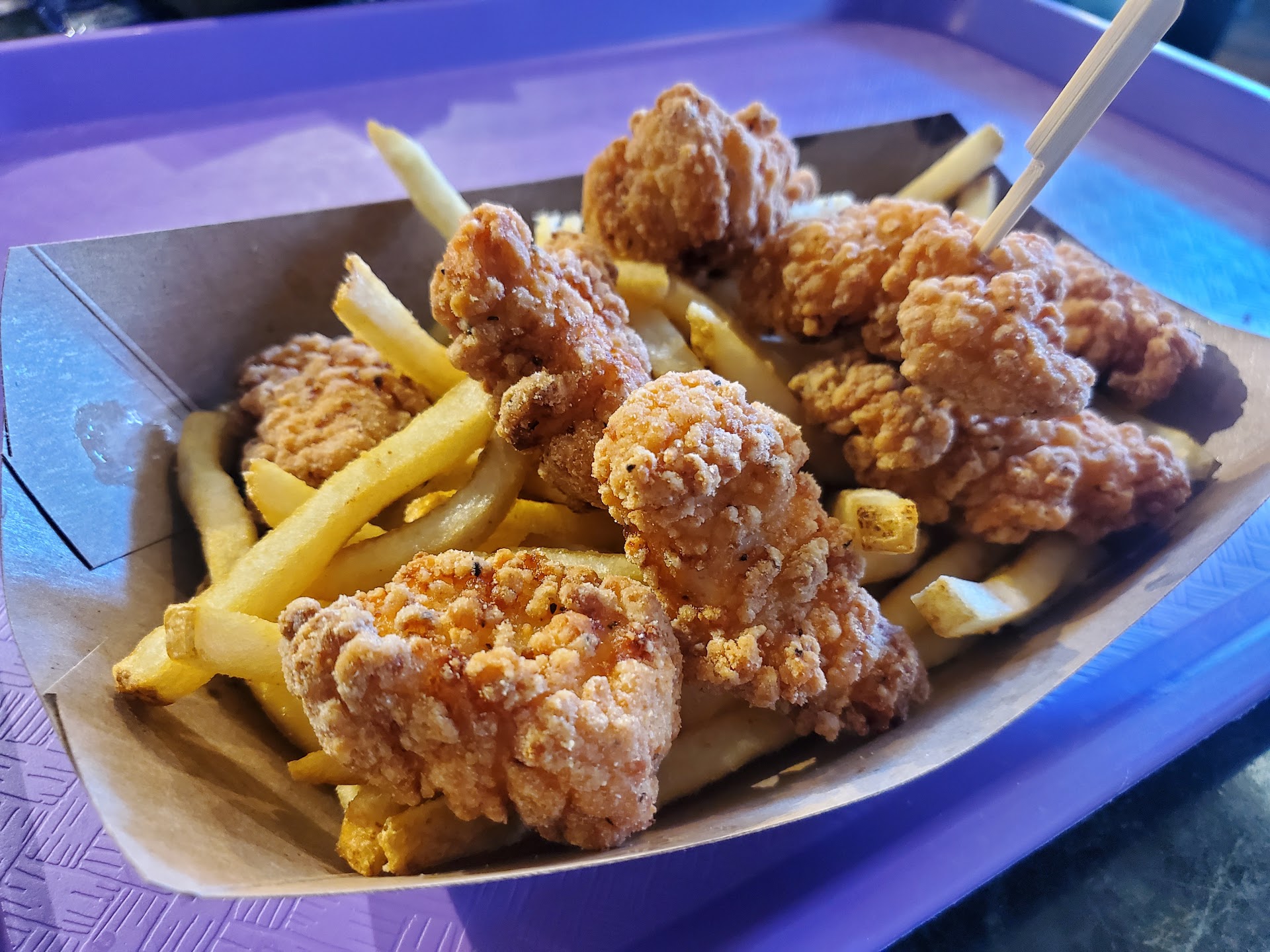 Read moreOf all the SINCERELY wonderful experiences at disney during covid, this one horribly missed... My experience was an EARLY just opened lunch time...they are so strict about not letting anyone in to restaurant till your order is ready (despite the wheelchair I was in and requesting to go park it that so I would have hands for a tray)...nope...not prorocol...so I waited and waited and waited for notification....every single soul was called in but not me...ten minutes later the app still didn't show ready but they called my name let me in...I parked the chair went and got food which was STONE COLD and went to get condiments with my MASK ON...but NO OTHER GUEST WHO WENt BY MY TABLE NOR WENT TO GET CONDIMENTS HAD A MASK ...huh??? That too is STEICTLY AGAINST disney coivd protocol and isn't cm were everywhere but no one said a word to the dozen or more people I saw who walked by me to get condiments....where is the consistency? 1 srar for stone cold food and the CLEAR arbitrary and capricious enforcement of covid protocols and the lack of safety felt...