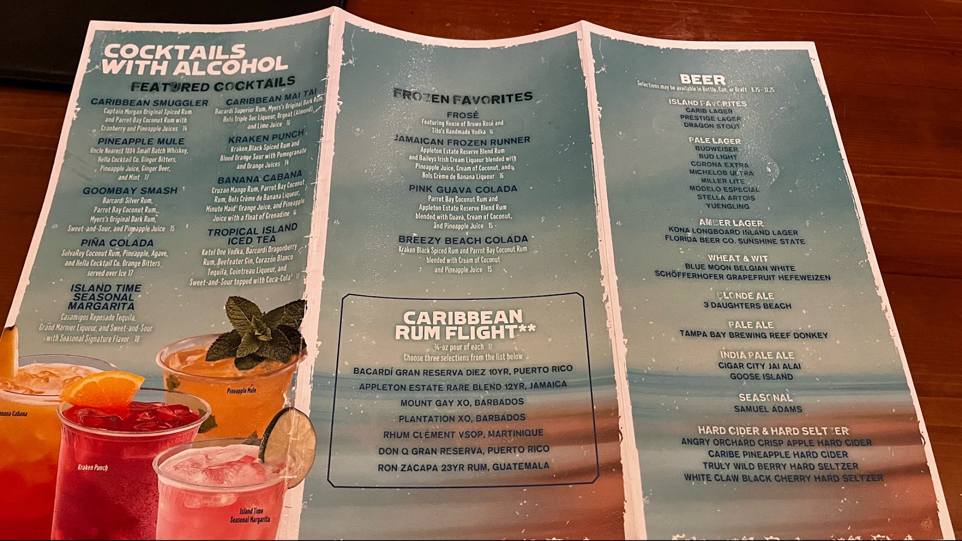 I got a mojito and husband got a beer. I love mint and mojitos, the mojito was incredible! It had so much fresh mint in it, was not any bottled mix, I watched the bartender make it, he shook it perfectly, it was fresh and light and actually had liquor in it. This is a great bar and fun area to sit and listen to the music. I could’ve sat there for a long time. The theming in this resort it’s top notch!