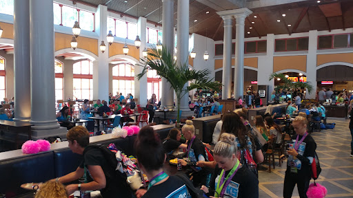 Trash!!!!!! I hate writing negative reviews. I usually have a great adventure at many of the Disney food location. This is not one of those. We wanted to go in since they had finished the remodel on the Mercado, Rix and the store. I had hoped that improvements might have equalled something nice. Be aware this is also attached to a Convention Center so the foot trafic is higher than a traditional resort. We had to stand in line to go into the quick service Mercado area as what little staff they had were standing outside the seating area guiding people to the lines (trying to control flow). We were going to sit in at Rix but there was a bunch of kids in the bar playing on their phones with water bottles not even ordering. We went through the options and decided on getting a nacho and a Mexican bowl. While we were working with the lady making the food, she ran out of ingredients. She apologized for no guacamole, pico and just got half a spoonful of sour cream for one of us. She was talking to another employee about getting some more but she couldn't leave at the moment (Okay who want the toppings for their nachos and bowls anyway right?) Then as she was making the nachos she ran out of clean plates and bowls. So my bowl had to be served in a to go container. Her and that other employee actually argued over getting fresh plates when one of them mentioned she could carry very many. So again the to go container are smaller than the plate or bowl so why would I mind, I mean it just worked well since they were out of some of the ingredients anyway. So we finally escape the line and get through the registers. Then to find a seat. Every table,,, every table that we found open was dirty. Not just dirty, filthy. They had sauces, dried food, etc. That's when I noticed there was no cast members/staff to be seen anywhere. In places like this there is always a staff clearing or washing. Managers or Leads usually walk around with a broom and dustpan. Not Here. Garbage was on the floors, heaping out of and on top of garbage stations. Oops, stepped in spilled soda. It was disgusting. I actually was wanting to complain but again no staff except back at the registers. We found a table and I grabbed a bunch of napkins and cleaned up enough to sit down. With the missing ingredients the food would have been mediocre at best. I became glad of my smaller portion. We actually finished quickly and I did the considerate Disney thing by cleaning up for the next person to use the table. Then came the daunting task of getting rid of our trash. That was an adventure. When we were leaving there was a cast member outside the eating area guiding people to the line to get in. I asked "Rich" if they were short staffed and why the place was so filthy. He replied with "nope not short staffed" and "we are doing the best we can". Trust me Rich I've been around Disney long enough to know when to call in runners to resupply and the importance of getting areas clean and cleared. I then asked who the area manager or lead is to which he told I would have to go talk to the front desk. So, in sumation skip this place at all cost unless you have no choice. Even with the attempt at flow management these guys couldn't get even...
