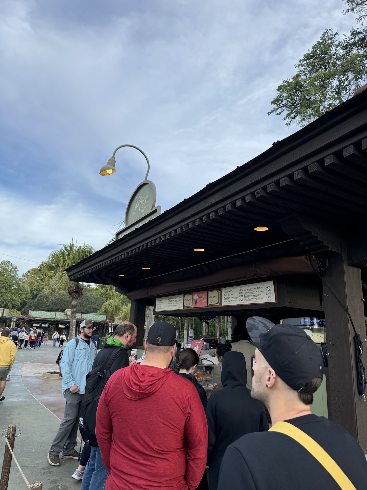 In the rush to get out of our hotel to make it to the transportation area and into the park before the lines got too crazy, I forgot to stop for a coffee. I need coffee to start my day, especially one that promised heat, long walks, long lines and crabby children. Lol I was a bit nervous because I'm not a fan of Starbucks and usually that's what reigns at theme parks. As we walked in before making it to the park, I noticed a kiosk with coffee in its name, from afar. It happened to be empty and I quickly looked at the menu and noticed they served mocha latte coffee. I purchased a hot mocha latte and a donut for my son. He was in heaven with his large, sprinkles, blue donut and I was in coffee heaven with my delicious latte. I had never noticed these little kiosks before but I can assure you I'll pay attention moving forward. Delicious coffee and donuts and the service was...