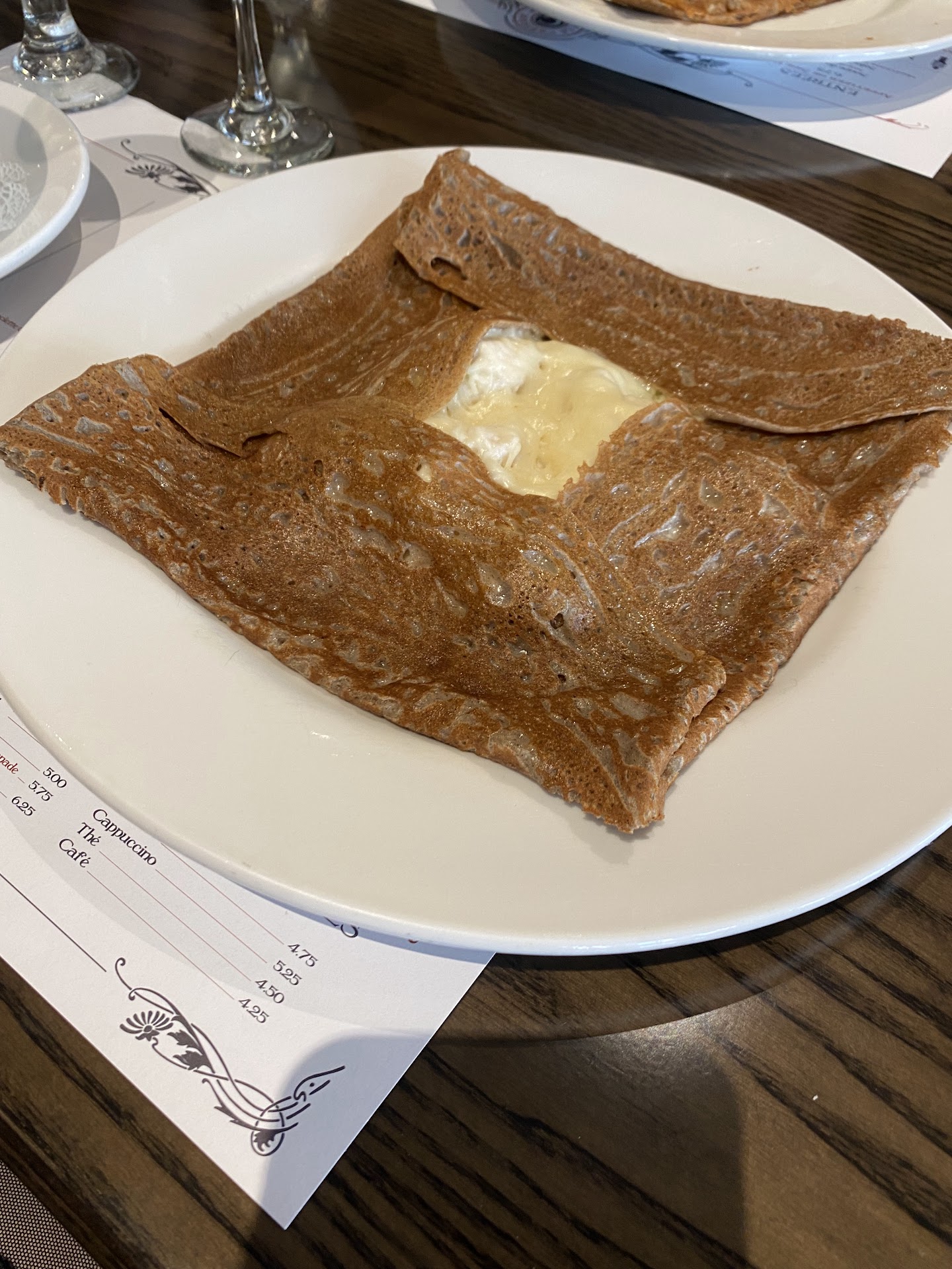 Read moreFirst visit. Last visit. Res online for 2, for 2:40. Sat at exactly that time. Ordered 2 waters, 2 cappuccinos, soup of day (potatoes/leek cream based , was just ok), husband: ham,cheese, egg crepe and a dessert banana caramel one. - I ordered Melba which is berries and almonds on top. Took forever to arrive about 25 minutes but Then it was only his that came out. egg was over easy in middle and terribly runny. We sent back and they scrambled it. New one arrived about 5-6 minutes later. Our Server was a very nice kid but maybe they need more training: he didn’t ask how husband wanted egg…. Or were we sharing the savory one….Never refilled water glasses…. Husband totally finished his and I had never got mine. Server asked was all ok and I asked where was mine? It was supposed to be my entre but I guess server assumed it was for dessert and we were sharing ham one…. This isn’t “man food.” It’s not a share thing. More of a snack. Not near filling enough to share. Literally 30 minutes later the two other ones came out. They were good but not good enough for the long wait. Nothing special. There’s no atmosphere or decor.it reminded us of a burger king. Beige walls. No color. It’s supposed to be PARIS.Very boring inside. Little seating. Not for children in my opinion. Kitchen very slow and also does walk up window outside which was jam packed.we noticed the 2 mgrs went to help in kitchen which obviously was very behind. Servers were waiting at window for orders. When I commented on how this was a total let down he apologized and said unfortunately in kitchen they have to “ take what they can get”. At 4:20 we left. Way too long for such a poor experience. We’ve eaten at several nice places on property that took less time and were excellent. . BTW: there’s no AP discount! Not at the other big restaurant in France either so beware. We didn’t know. It’s not on the my Disney app when...
