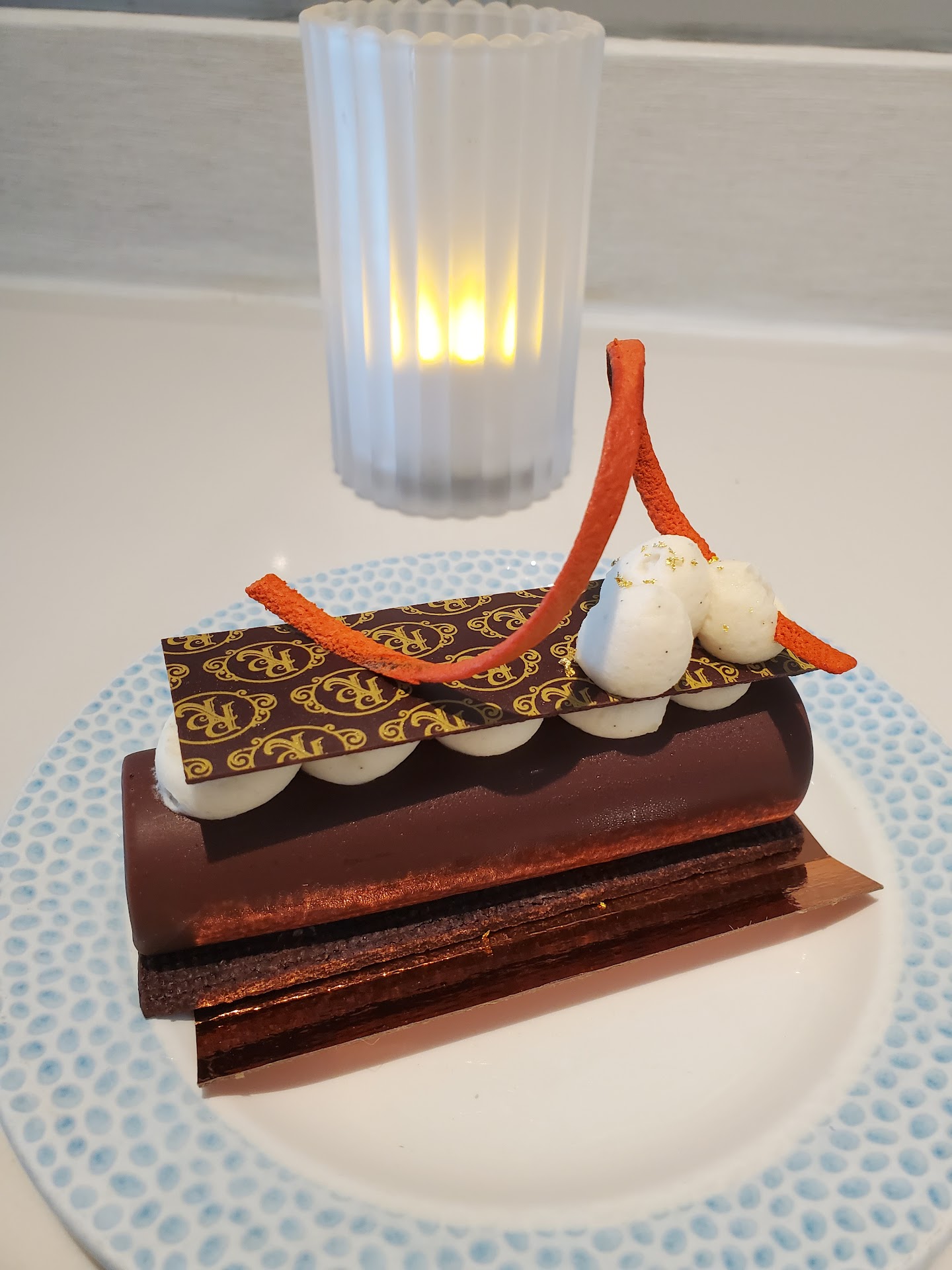 We really liked the iced white mocha latte. Although, I would have told them to hold the whipped cream had I known about it. It was very good, and very well made. The dessert pastries are great! It totally satisfied my chocolate craving. The Orange-Coffee Ganache Tart was amazing! I really love that I could taste every flavor. It was lighter than it looks. It had chocolate covering with the Riviera Resort logo stamped all of it. It's a nice touch. My husband said that his Trois Chocolat selection was very good. It had a mini macaron on top. They do make pretty desserts here at the resort.