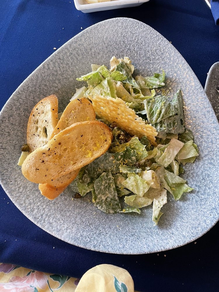 The good: It is a gorgeous restaurant with amazing views. Spending our last night there watching the monorails pass by Cinderella's Castle and Space Mountain was just amazing. The Caesar salad I had was quite possibly my favorite one I have ever had; it was light and refreshing and delicious. My friend had the Maine Lobster Bisque and raved about it.
