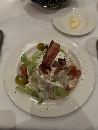 Main Course: Amanda and I both ordered the steak of course. Amanda is a filet girl and I usually go for the biggest steak that's not meant for two people mainly, so Amanda doesn't judge me for trying to eat a 42 oz Tomahawk steak to my face. So, I just went for the 24 oz Angus Porterhouse ($70) and Amanda opted for the 10 oz filet ($68). We were feeling a bit boujie so also decided to get our steaks 'Oscar Style' which tops your steak with lump crab meat, sliced asparagus and hollandaise sauce. The steaks were both cooked perfectly with a nice taste of char on the edges. I did try the steak plain before diving into the toppings and I do think it could have been a bit more seasoned. I swear I am not trying to nitpick, sometimes I feel like steaks are just not quite seasoned enough for my liking. I will also add that this is not my first rodeo, so I have had Oscar Style before. The hollandaise sauce was very good. It had a great consistency and a nice lemon tang. The asparagus was tender and sliced thin which I appreciated vs full asparagus spears. The lump crab was sweet and delicious though I do prefer king crab which I have seen done in the past, especially for the amount of money. 8.5/10