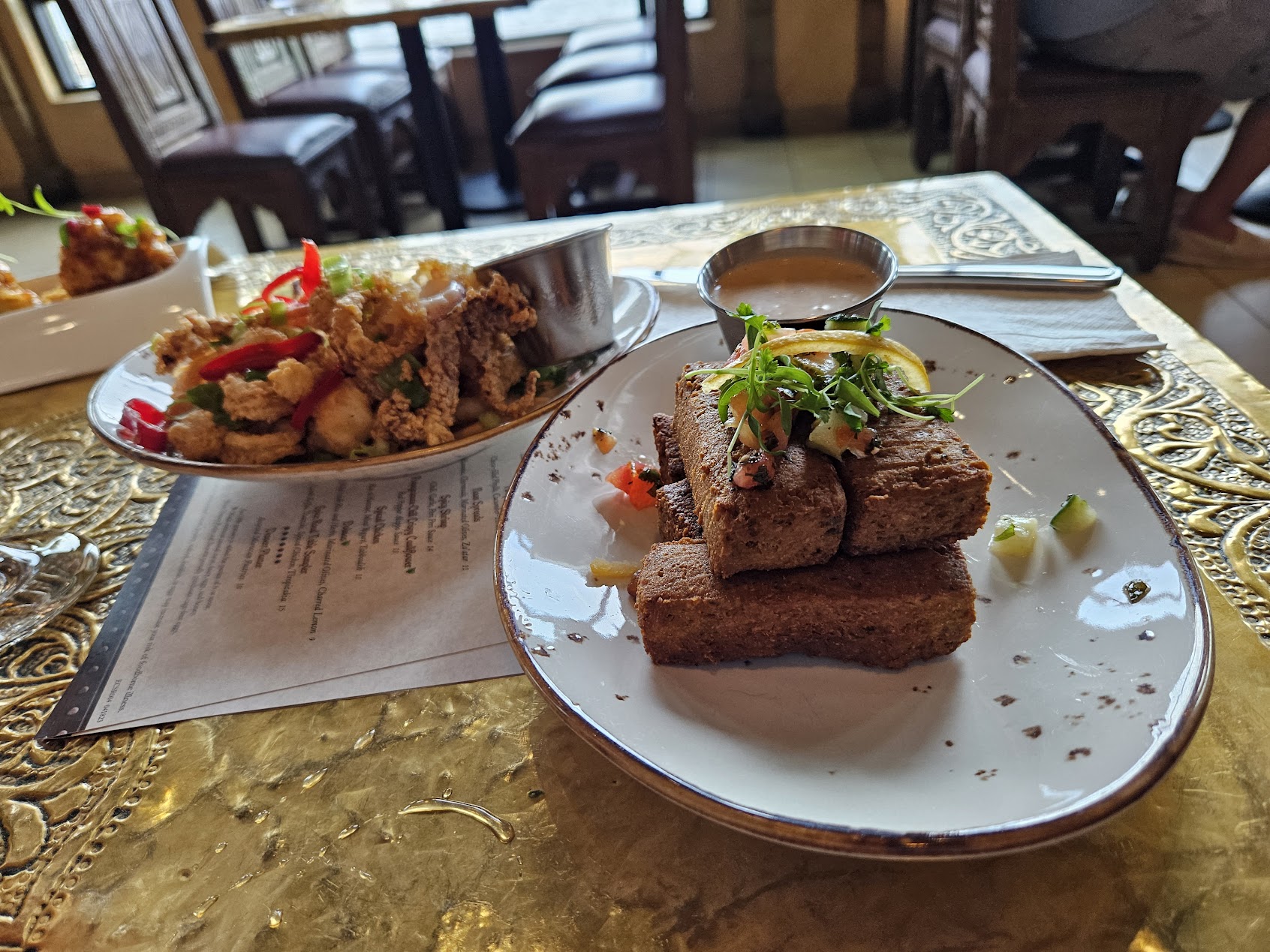 Spicy shrimp was probably my favorite dish. It was actually spicy and the shrimp was fresh with a great snap. The Chermoula that was part of the Naan sampler was excellent. Very complex in flavor but not overpowering in any spice in particular.