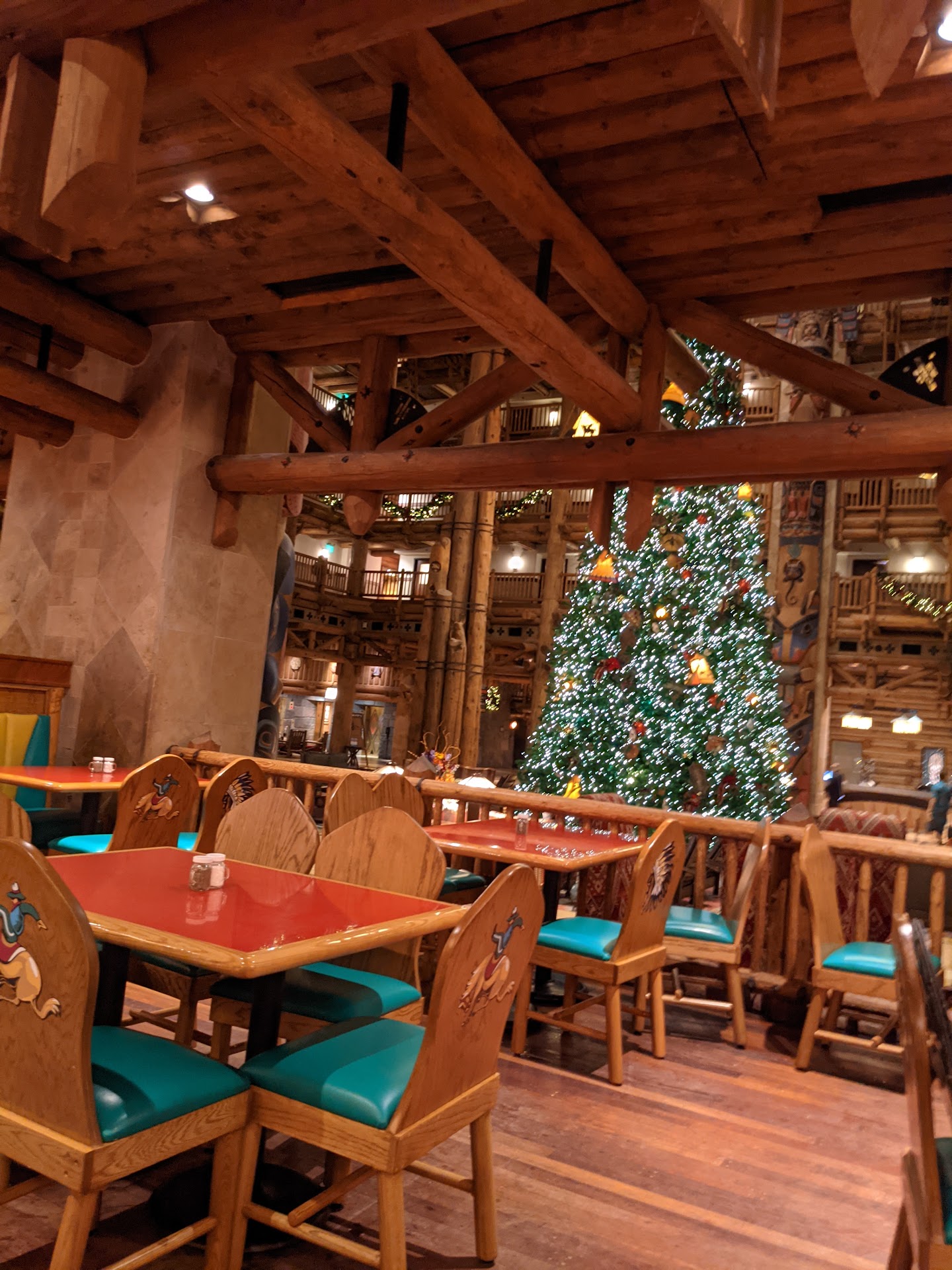 This restaurant is amazing a dinner. We set up dining reservation on My Disney Experience and checked in on the app. Spoke with a cast member at the front And she said everything was already checked in we would get a text when ready. So during that time she recommended looking at all of the Christmas decor in the lobby which is stunning. There's a large fireplace that they have chairs in front of that you can sit in enjoy. They have lots of couches and single chairs around the large Christmas tree in the middle of the lobby. All very comfy and excellent for chilling out after a long day at the parks. When We received our text message We went up and seated immediately with a wonderful view. The cast member that was serving us was phenomenal He was constantly making sure everything was refilled and more food was brought out when needed without us even having to ask. We had the skillets for the adults and kids macaroni. He asked for recommendations from the cast member and he was very knowledgeable on what they had and what was good to go together. The atmosphere was so relaxed and we thoroughly enjoyed. We ordered the skillet the land by the sea and the traditional. With the skillets you are able to order more of certain proteins and vegetables. You also have all you can eat cornbread and homemade coleslaw. All the servers were joking and having a good time with all of the guests. They will even sing Happy Birthday And they bring out a cupcake for the birthday individual! The best part about this one is that most of the times at restaurants and even sometimes in the park you feel like you're in a hurry to get out quickly. That is not the case here our cast member told us over and over "stay as long as you want eat as much as you want enjoy the time that you're here". Between the views and the laid-back style it was so worth it. This restaurant is also located on the left side when you come in to the lobby it is open to the lobby area so you don't feel closed at any either. The decor goes with the rest of the lobby which is even better. It is definitely a restaurant for all ages Small children told her adults very accessible as well. It is also located right near the restrooms of the lobby which are phenomenal as well very clean. All in all this was an amazing experience and I will definitely be bringing my extended...