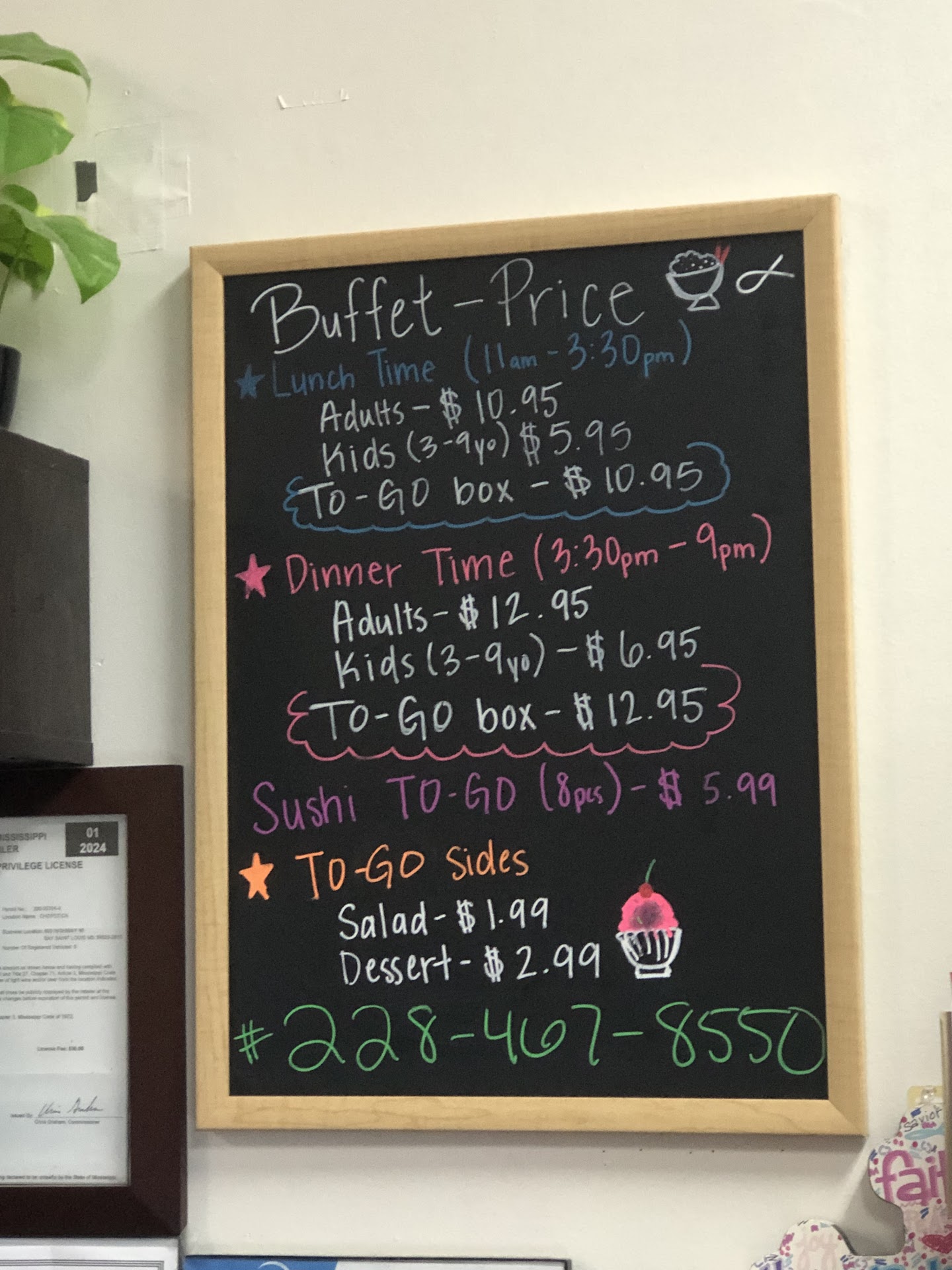 I LOVE THIS PLACE SO MUCH. I may be biased because I've been going here for over a decade. I know the family that owns it and we are pretty good friends at this point because I go there so much. The food is excellent and always fresh. The buffet is wonderful and they have an assortment of all kinds of Chinese foods and different kinds of food for those who don't want Asian cuisine... Like a young child. They always greet you with a warm smile and are great with the to go plates. We always get our food to go and they weigh the boxes by the pound. This is very useful if you're not that hungry or if you're really hungry. Price is different with how much you get. They also offer an array of delicious fresh sushi. I suggest you ask for a side of "dumpling sauce" as it's not on the buffet, but it's an AMAZING sauce for any of your choices.
