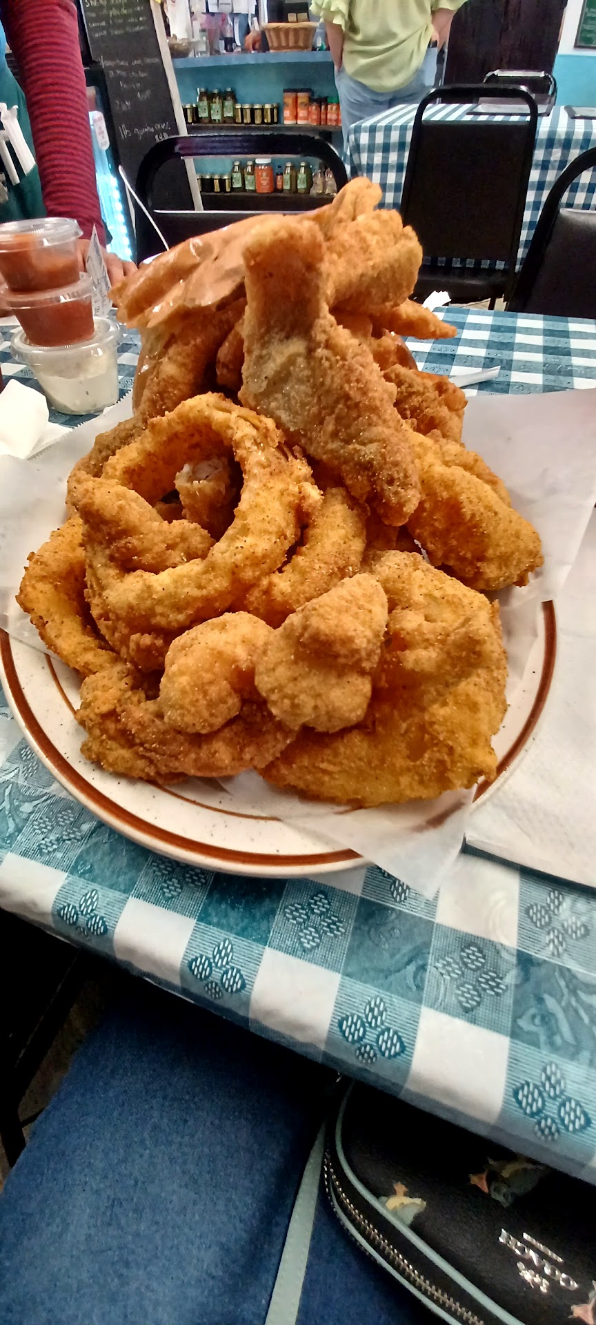Read moreI decided to do a little self care this past weekend and take me, myself, and I on a drive to this place my big sis raved about. Its somewhat hidden, but worth the drive to look for. I had the opportunity to meet and talk with the owner whose also a retired fireman; Sorry I'm not always good at remembering names. Anyways we had a wonderful conversation. He's a very pleasant and warm-spirited person along with the waitress, she was very sweet. Here's what I had to eat: Just because it sounded different, I had to try what I saw on the menu called Seafood "Dinghy"w/ homemade onion rings . Basically its a seafood platter in a bread bowl. The bread bowl was actually toasted with garlic butter in the inside too :). I love me some mac and cheese so I decided to try. It was pretty good for my liking, I would have liked a more creamy consistency, however, it was not bad at all. I noticed everyone chowing down on crawfish, so I decided to try some too. Oh my! They were very juicy and a bit spicy, but good. It definitely helped clear my sinuses, just look at my pics LOL. I also decided to get some bread pudding to go, no pic. However, it was pretty good just a little too sweet for me. I highly recommend you give this little hidden gem a try. I'll be back with my family for the...