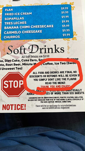 Read moreHad the worst Mexican food ever. ZERO FLAVOR ON EVERYTHING. HECK This is not Mexican food. This is just poorly seasoned food. Maybe it was a hit and miss or What ever it was. It definitely was not enjoyable. Rice had a weird aftertaste. The steak needed a lot more than salt. Even the refried beans were terrible. How Can you screwed up an Arnold Palmer? They did here. Instead of saying we are out of tea for the night, they serve the backwash at the bottom of the pitcher. Good job đ. thatâs what the waitress excuse was. Donât see why people are so excited about this place. The old restaurant was better. The empty parking lot was the...