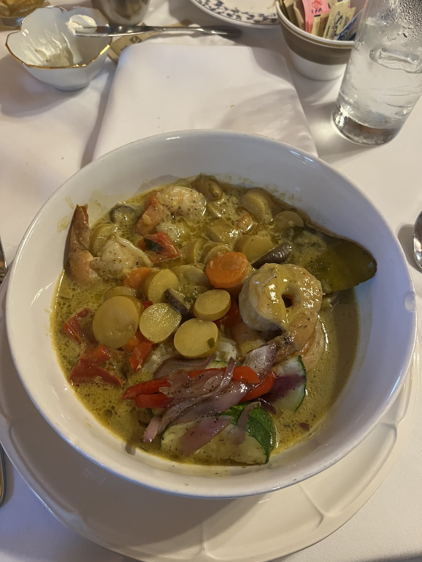 We did not waste time with soup or salads and moved straight into the entres. A needed highlight of any good dinner. I ordered the posesiĂłn almonde with the fish being black drum. And my girlfriend ordered the off-menu blackened mahi mahi. The presentation of both being expected. Served on plates appearing to be authentic to the house and a plating presentation of quality. And then came the first bite. All of the preconceived notions and expectations riding on this moment. So when the first bite of the wonderfully fresh black drum tasted like that of something that just came out of a microwaved popcorn bag; you can begin to see the dominos falling faster and faster. The rice seller to be cooked in butter and nothing else. Next was my girlfriendâs mahi mahi. Thankfully part of the taste was saved by the blackened seasoning, but stopped there. Both entres were served with cooked vegetables seasoned with salt and pepper. A welcomed addition, but unfortunate that salt and pepper was no where else to be found.