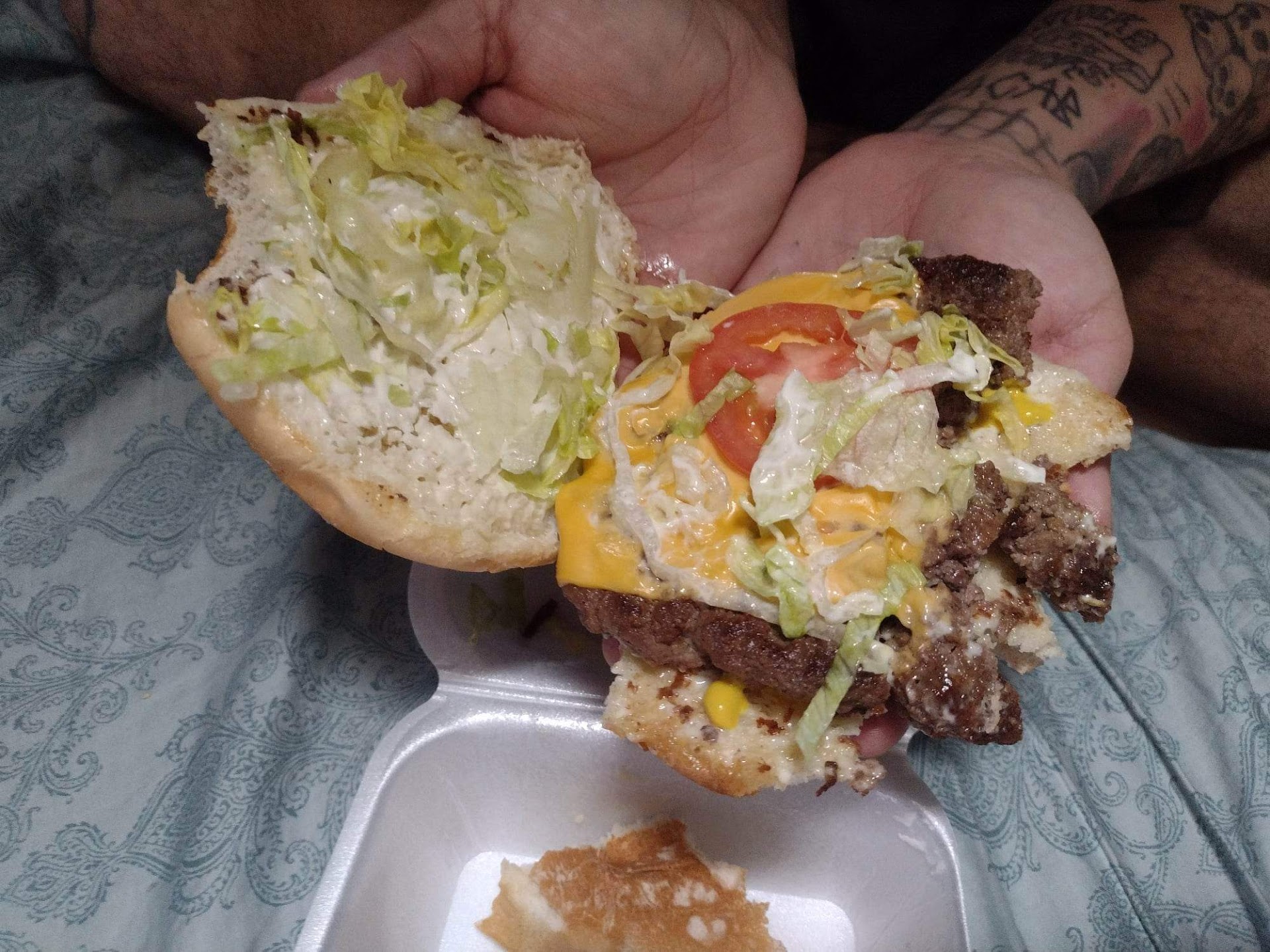 So we get the food, and my grandmothers order is wrong. I asked her if she wanted me to send it back, she said no I guess I’ll eat it. She’s old school and thankful for everything. She try’s so hard to power through her dislike of the lettuce, but unfortunately most of it ended up thrown away.