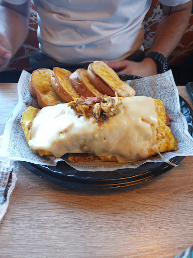 Hacemos las órdenes, los que estaban de camino nos dijeron lo que querían y nos sentamos a esperar. Varios minutos después, me llaman por nombre que una de las comidas que ordene, el omelet de tripleta con amarillo, pues se habían acabado las carnes y solo tenían Pavo, pues dijimos que estaba bien que lo hicieran con eso.