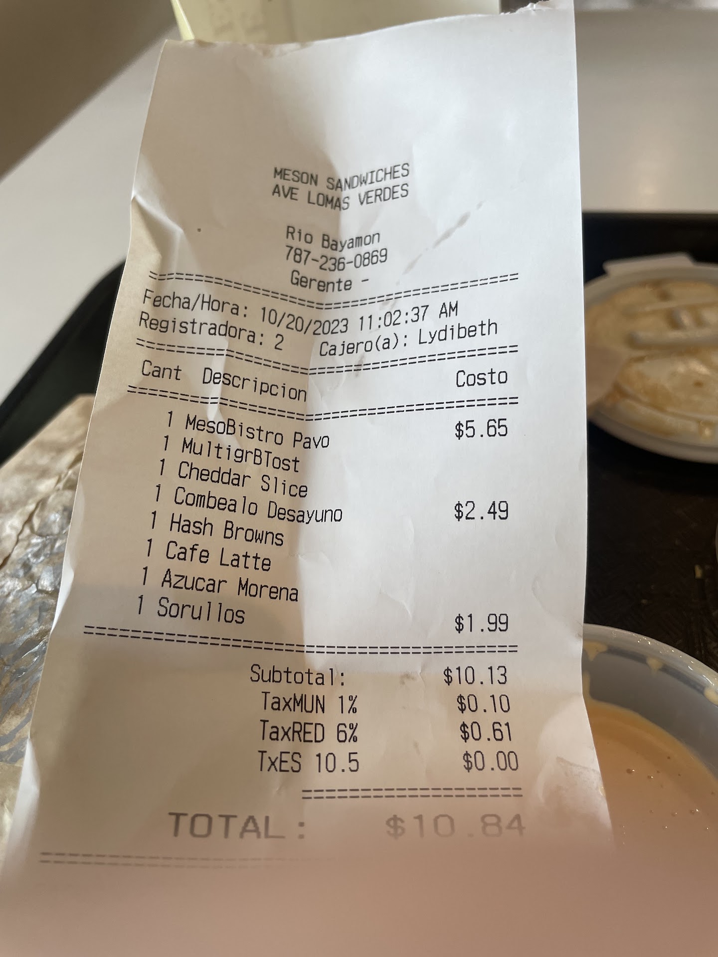 El Mesón Sandwiches (Plaza Río Bayamón) is a solid choice for a quick, local meal. The Desayuno Gigante and other breakfast items are always a hit, and the sandwiches are good for a fast-food take on Puerto Rican sandwich culture. That said, it’s not a replacement for the real thing—while the bread is decent, you’ll find better at traditional bakeries. Still, for convenience and consistency, it’s a...