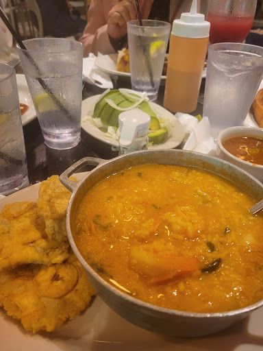 This was on Mother's day(I have only been to the one in Carolina which always kills it. My cousin said her shrimp were chewy and my friend sent his food back twice cause it was cold. My husband had the chuleta kan-kan and it was delicious (huge too). I had the sopa de plátano they have 2 sizes, it was fine. We ordered churrasco and carne frita and it was good too. The big problem was that this location is new so they were not organized. We put our name down and the host said 45min. I waited for rest of my 7 person party. All the smaller parties were almost immediately taken in and seated and we waited and waited. Why in the world wouldn't they join 2 small tables instead of making us wait. Then when they called us, we didn't hear and gave our table to another party. How could we hear if there were tons of people and music. We would have had to stand right in front of the host and we didn't all fit. Just ridiculous! This has never happened at the...