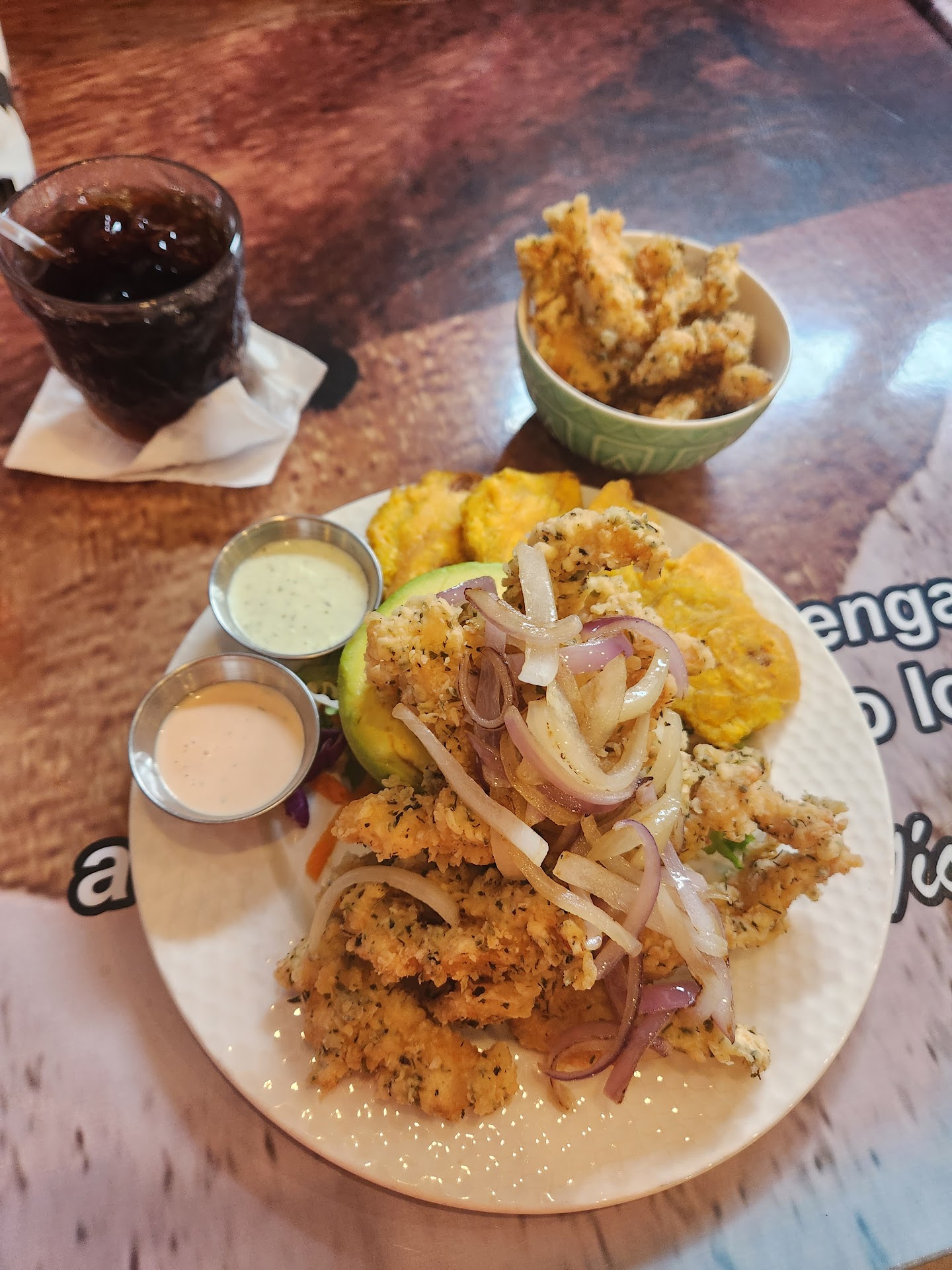 I had the avocado stuff with fish nuggets and a side of fried plantains, not in the menu, so they built it to order, thumbs-up for that. The server had an extended knowledge of the menu and even gave us the prices. Also, she took her time to recommend her favorite plates. Prices are accordingly to the place and the...